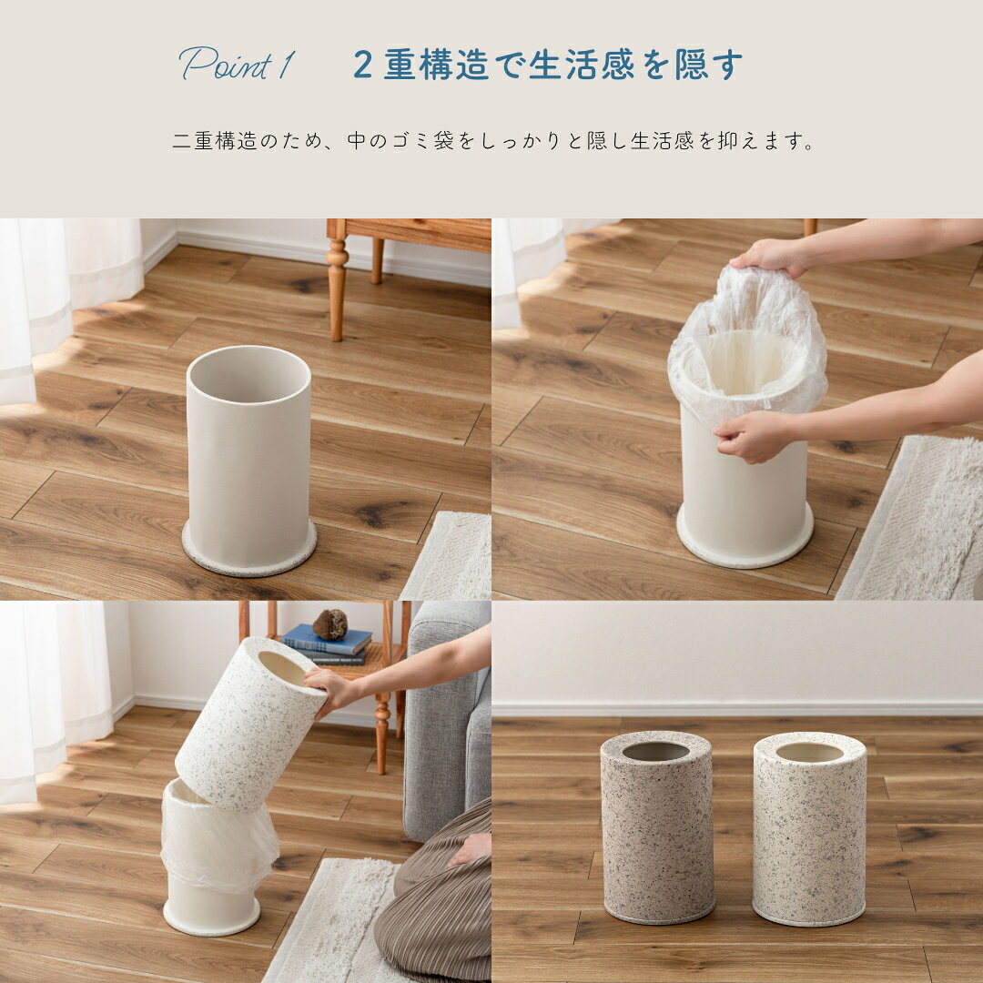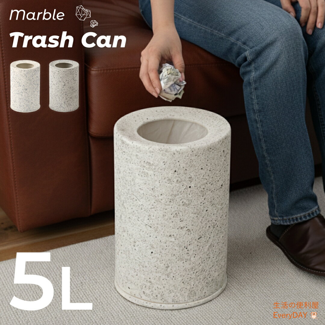 袋が見えないゴミ箱 小さい コンパクト 5L 被せるタイプ 中身が見えない 寝室 浴室 洗面所 おしゃれ テラゾー トラッシュカン5L
