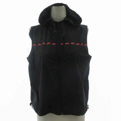 【中古】ピッコーネクラブ Picone CLUB ナイロン ジレ ベスト C519843 フーディー ロゴプリント ジップアップ 日本製 ブラック 黒 1 レディース 【ベクトル 古着】 250708