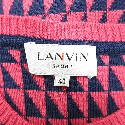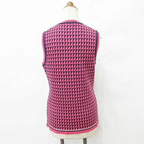 【中古】ランバン スポール LANVIN SPORT ゴルフ スポーツウエア ニット ベスト クルーネック プルオーバー 幾何柄 刺繍 ウール ピンク 紺 ネイビー 40 レディース 【ベクトル 古着】 251114