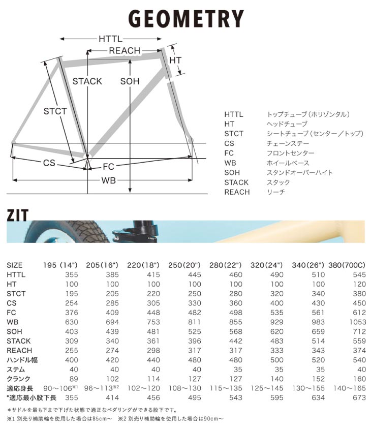 ■このモデルは『ペダル』、『キックスタンド』、『泥除け(フェンダー)』が標準装備されております。 ■【別売オプション】専用バスケット(ZIT バスケットセット)のページはこちら。 SPEC 適応身長 125〜145cm ※適応身長はあくまで目安です。 サドルを一番下まで下げた状態の高さ 63cm 参考重量 9.7kg/11.25kg *ペダル、スタンド、フェンダー付き重量 ※重量はメーカー参考の値です。 フレーム ウルトラライトアルミ リアエンドフェンダーダボ、シート/BBブリッジフェンダーダボ、 ダウンチューブ上下ダブルボトルケージダボ、2.12″幅対応 フォーク ウルトラライトアルミ エンドフェンダーダボ、ケージピッチ3穴ダボ ヘッドセット インテグラルヘッドセット1-1/8 ブレーキレバー ジュニア用コンパクトレバー ブレーキ アルミVブレーキ フリーホイール シマノ MF-TZ500 6S, 14-16-18-21-24-28T チェーン 6S クランク アルミ シングル リングガード 140mm 36T BB VP シールドカートリッジ スクエア 軸長126mm/シェル68mm ペダル レジン 9/16 シフター シマノ トリガーシフト SL-TX30-6R Rディレーラー シマノ RD-TY21B 直付け フロントハブ アルミ ナット止め 3/8″x32Hx100W リアハブ アルミ ナット止め 3/8″x32Hx135W リム アルミ 32H CNCブレーキ面切削 タイヤ 24″*1.75″ アーバンタフタイヤ 英式バルブ スポーク ステンレス14G ハンドルバー アルミ 22.2mmグリップ 25.4×520mm幅 バックスイープ6D ステム アルミ 35mm(※シルバーは60mm)25.4mm OS グリップ クレイトン サドル ライトウェイ ソフトスポーツ ジュニアサドル シートポスト アルミ 27.2×280mm シートクランプ アルミクイックリリース 31.8mm 付属品 キックスタンド、ベル、ディレーラーガード、フェンダー ※掲載画像はイメージです。実物とカラーイメージが若干異なったり、構成パーツ等が異なる場合がございます。 ※構成パーツやデザインなどの仕様については予告なく変更される場合がございます。 予めご了承いただきます様お願い致します。RITEWAY ZIT 24 可能性しかないキミたちへ。 ペダルを漕げるようになった瞬間の、達成感で満たされたかけがえのない笑顔。 スーパーまでの道のりを先導するようになった、頼もしい背中。 想像もしていなかった子供たちの表情に出会えます。