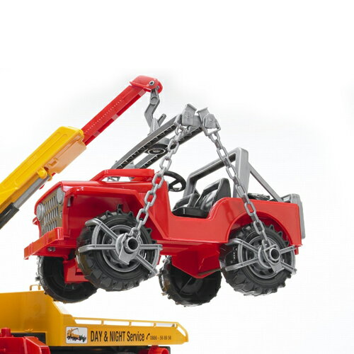 ◆「なぜ、どうやって動く?」 という好奇心を刺激するよう計算された設計。 ◆子どもの想像力を引き出し、知能をグングン育てます! 壊れた車を乗せたり移動するはたらく車のレッカー車! ユニッククレーンが付いているので、車を持ち上げることもできる はたらきものです! 子供たちが大好きな4WDシープ(クロスカントリー02420)もセット! 色々な遊びが楽しめるモデルです チェーン・タイヤホールド・タイヤ止め(プラモデル状)が付属 クレーン赤色部:伸縮可能(手動) 根元ハンドル:クレーン角度 荷台下最後部タイヤホルダー:引出し/格納可能 エンジン部分を見るためヘッドを倒すことができます。 ■商品サイズ:495×255×185(mm) スケール 1:16 対象年齢 3歳以上 ドイツ製