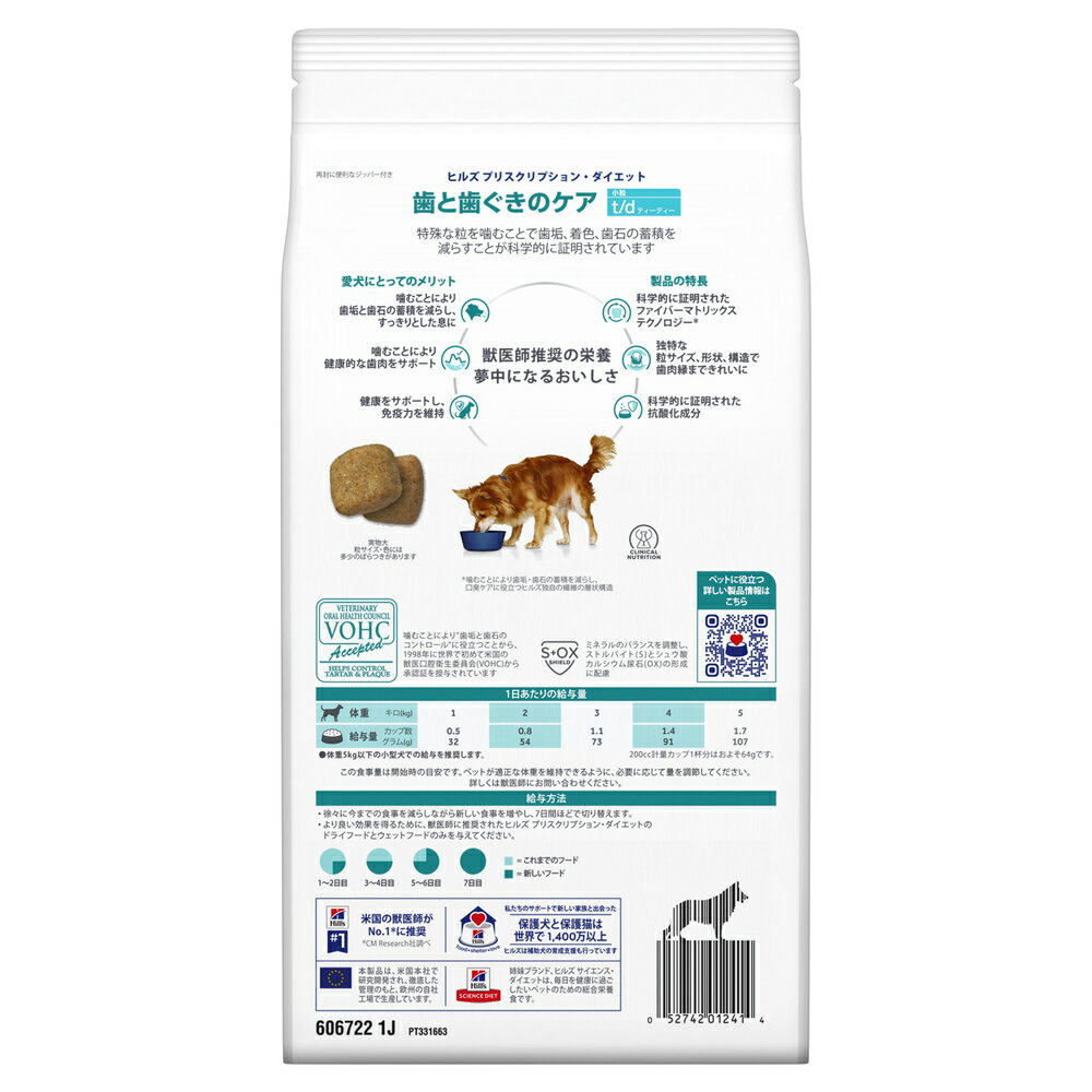 ※リニューアル内容:2025年5月頃、製品リニューアルがございました。【リニューアル内容:一部原材料の調整】 セットでの販売の商品になります。単品での返品は一切お受けしておりません。あらかじめご了承ください。【製品の特徴】●科学的に証明されたファイバーマトリックステクノロジー※1●独特な粒サイズ、形状、構造で歯肉縁まできれいに●科学的に証明された抗酸化成分●Veterinary Oral Health Council(VOHC)※2によって、小型犬の歯垢と歯石の両方の蓄積を減少させることが科学的に証明されている唯一の療法食【ペットにとってのメリット】●噛むことにより歯垢と歯石の蓄積を減らし、すっきりとした息になります●噛むことにより健康的な歯肉をサポートします●健康をサポートし、免疫力を維持します●長期間の成犬の食事として推奨します(※1)噛むことにより歯垢・歯石の蓄積を減らし、口臭ケアに役立つヒルズ独自の繊維の層状構造(※2)米国獣医口腔衛生委員会 ■その他注意:●予告なくパッケージデザイン・内容などが変更になる場合がございます。●獣医師の指導のもとに給与してください。 ■素材・材質:トウモロコシ、米、トリ肉(チキン、ターキー)、セルロース、動物性油脂、エンドウマメ、全卵、チキンエキス、植物性油脂、ミネラル類(カルシウム、リン、ナトリウム、カリウム、クロライド、銅、鉄、マンガン、セレン、亜鉛、イオウ、ヨウ素)、乳酸、アミノ酸類(タウリン、トリプトファン、リジン)、ビタミン類(A、B1、B2、B6、B12、C、D3、E、ベータカロテン、ナイアシン、パントテン酸、葉酸、ビオチン、コリン)、酸化防止剤(ミックストコフェロール、ローズマリー抽出物、緑茶抽出物) ■成分:【乾物量分析値(%)】たんぱく質17.6%、脂質16.6%、炭水化物(NFE)51.4%、粗繊維10.5%、カルシウム0.58%、リン0.44%、カリウム0.65%、ナトリウム0.21%、マグネシウム0.078%、ビタミンC110ppm、ビタミンE613IU/kg、オメガ-3脂肪酸0.28%、オメガ-6脂肪酸3.28% ■代謝エネルギー:350kcal/100gあたり ■内容量:1kg×2 ■JANコード:0052742012414 ■原産国:オランダ ■メーカー:日本ヒルズコルゲート ■名称:ペットフード ■賞味期限 :パッケージに記載 ■販売者:ペットゴー株式会社 0120-958-046 ■区分:ペットフード ■広告文責:ペットゴー株式会社 0120-958-046 ■更新日時:2026/01/21 17:23:38 <免責事項>本サイトに掲載されている商品情報は、商品パッケージやカタログ、またはメーカーから提供された情報に基づくものであり、その内容について当社は責任を負いかねます。これらについてのお問い合わせはメーカーに直接行っていただきますようお願いいたします。また、メーカーによる仕様変更に伴い商品の表記と実際の仕様が異なる場合がございます。