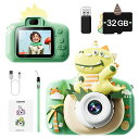 子供の遊び、記録 【可愛いな恐竜デザイン&持ちやすい】この可愛い恐竜カメラは、わずか98gで、お子様が持ち運びやすく、大人用のカメラと同等の機能を備えています。小さな手でも簡単に操作でき、写真やビデオを楽しむことができます。家族や友達との思い出を残したり、自分自身の成長を記録したりすることができます。 【4800万画素&1080PHD動画】このキッズカメラは、4800万画素の前後カメラを備えており、1080Pのビデオ撮影機能もあります。鮮明でクリアな写真を撮影し、自撮りをプレイし、お子様は美しい風景や友人との思い出を写真に残すことができます。 【多機能トイカメラ】この子供用カメラは写真撮影をより楽しいものにするため、39種類のフレームとフィルターを搭載しています。子供たちは、自分の好みに合わせたフレームやフィルターを選び、自分だけのオリジナル写真を撮影することができます。また、タイマーが設定可能、友達、家族と一緒に写真を取りましょう~ 【32GBTFカード付き】写真や動画だけでなく音楽も保存することができます。自分のお気に入りの音楽を聴きながら、写真撮影や遊びを楽しむことができます。