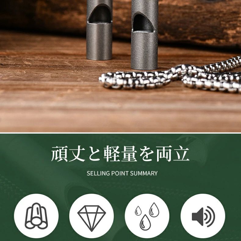 チタン製 ホイッスル 地震 SOS 口笛 大音量 120dB 頑丈 アウトドア 防災 緊急 登山 EDC シグナル キャンプ ハイキング ネックレス付 緊