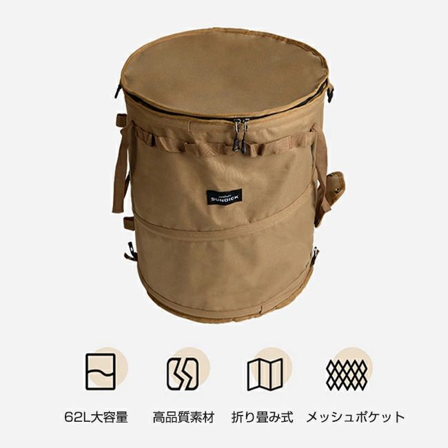 トラッシュボックス ポップアップごみ箱 キャンプ用ゴミ箱 自立式 ゴミ箱 62L 折りたたみ ガーデンバケツ ゴミ箱 蓋付き ゴミ袋固定リン