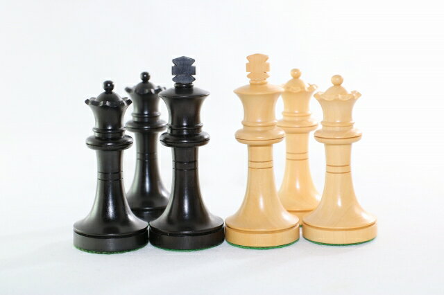 ハンドメイド高級 チェス駒セット ♪ロシアン・プロモ・モデル 黒檀・柘植♪ キング3.5インチ ハンドメイドの高級チェス駒です。製作会社は国際チェス社会では世界的に有名なメーカーです。(他店のような中国製のものではありません!) 私は個人的にソ連時代のヴィンテージ・チェス駒をコレクションおり、これは当時よく使われていたスタンダードなロシアン・モデルであることが分かります。ビショップがスマートで、ナイトにもロシアン・スタイルの独自性がでています。ポーンやルークも黄金期のソ連チェス界で広く使われてきたものの特徴がよくあらわれています。 チェスをやるからにはロシアは外せません。アレヒン、ボトヴィニク、スミスロフ、タリの棋譜をこの駒を使って研究すると格別な感じがするのは気のせいでしょうか。^^ 駒のスタイル: ロシアン・プロモ 材質: 白は柘植、黒は黒檀 キングの高さ: 3.5インチ (約9 cm) 昇格用クイーンもついています。 生産国: インド 盤は別売りです。チェス・ピースのみです。20-21インチ用のボードが適合サイズでお薦めです。 その他のチェス用品はこちらをご参照くださいませ。 店長の私自身がチェスの大ファン(将棋も好きですよ!)です。ときどきブログでチェスの話題に触れています。下手ですけど、どなたか連絡いただければchess.com のIDをお教えいたします。対局しましょう!^^ゆうパックでの発送です。