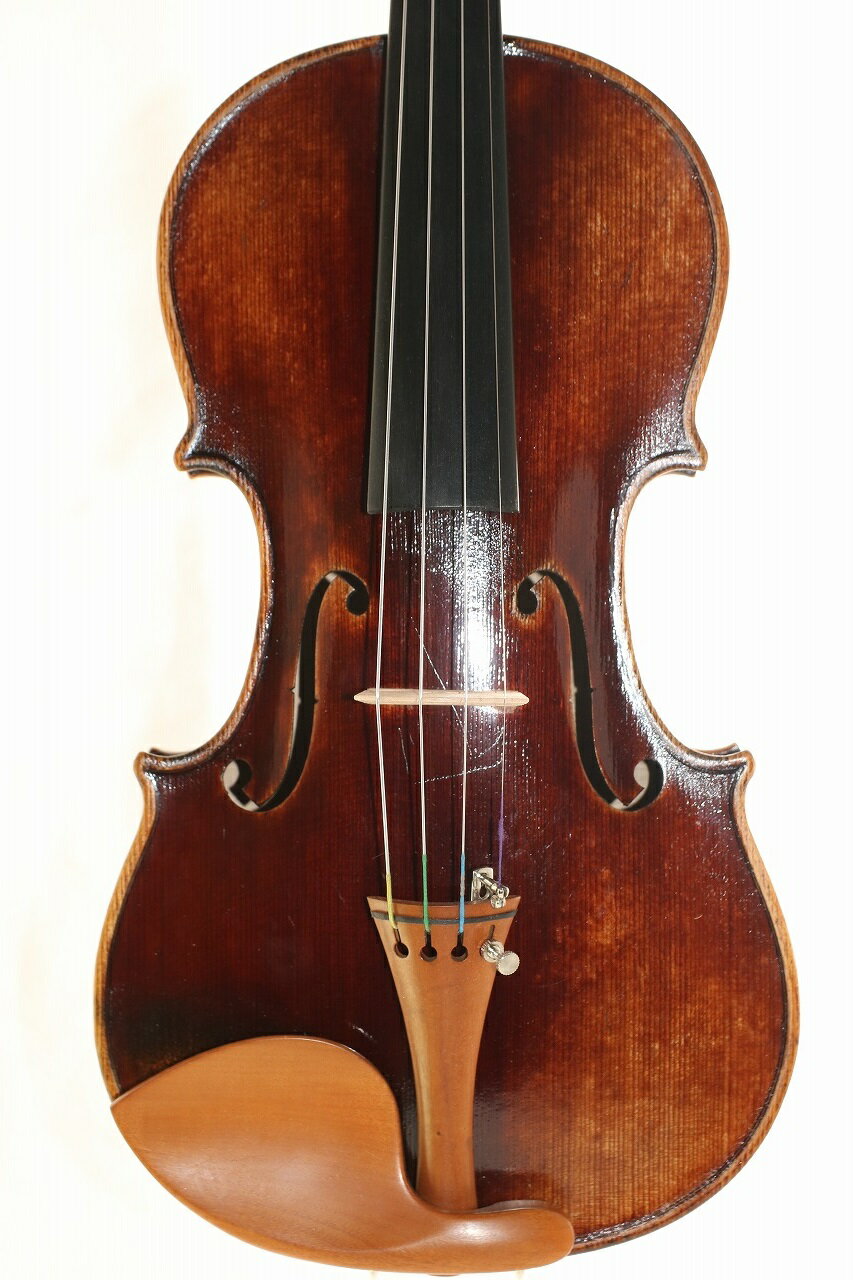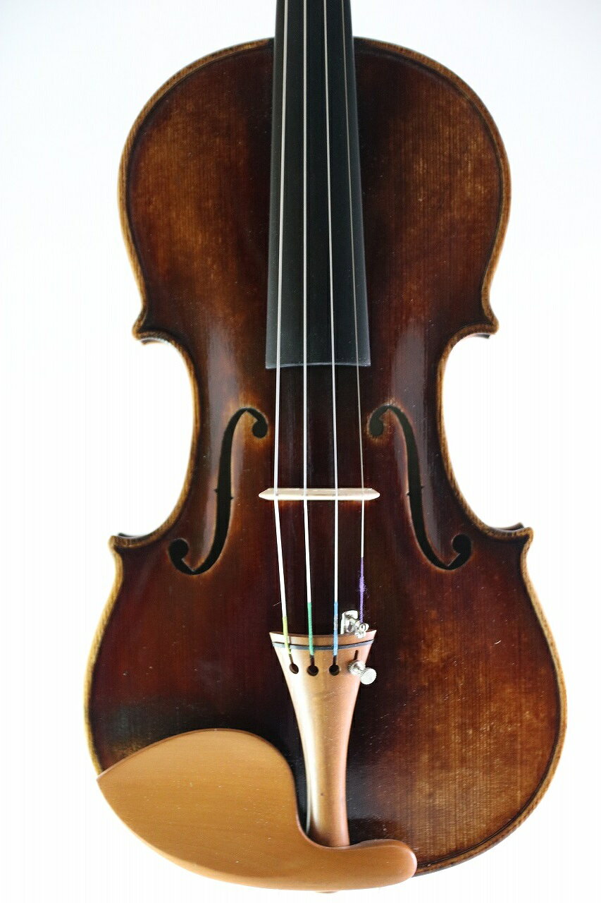 ♪マスター・バイオリン♪ ボーン上ナット オールド仕上げ 50年物スプルース材 ストラディバリ・モデル4/4 ボーンの上ナットが高級感を漂わせています。上級者の使用を前提に製作した「マスター・レベル」の楽器です。 オールド風のニス仕上げでニスのはげ具合を再現しています。表板のスプルースは50年物で、裏板も高品質なメープルです。 ストラドモデル。美しい杢目のでた2枚裏板です。 モデルは違いますが、同じ製作者のバイオリンの音色を視聴してみてください。(一番下の写真をクリック!) Vecchio工房、2021年製作 この製作者の他の作品はこちらです。 表面は厳選した自然のスプルース(木材)を使用。自然乾燥。 裏側は厳選されたメープル材を使用。自然乾燥 弓、ケースもついてます。バイオリンは一体一体手作りなので、似ているかもしれませんが、商品番号の違う商品の画像はそれぞれ異なります。大量生産の品では味わえない、手作り、ONLY ONEのよさをご堪能下さいませ。