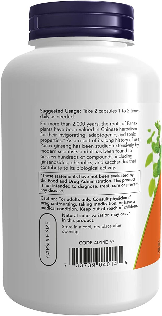 パナックスジンセン(朝鮮人参) 500mg 100粒 【Now Foods Panax Ginseng Extract 100 Veg Capsules】