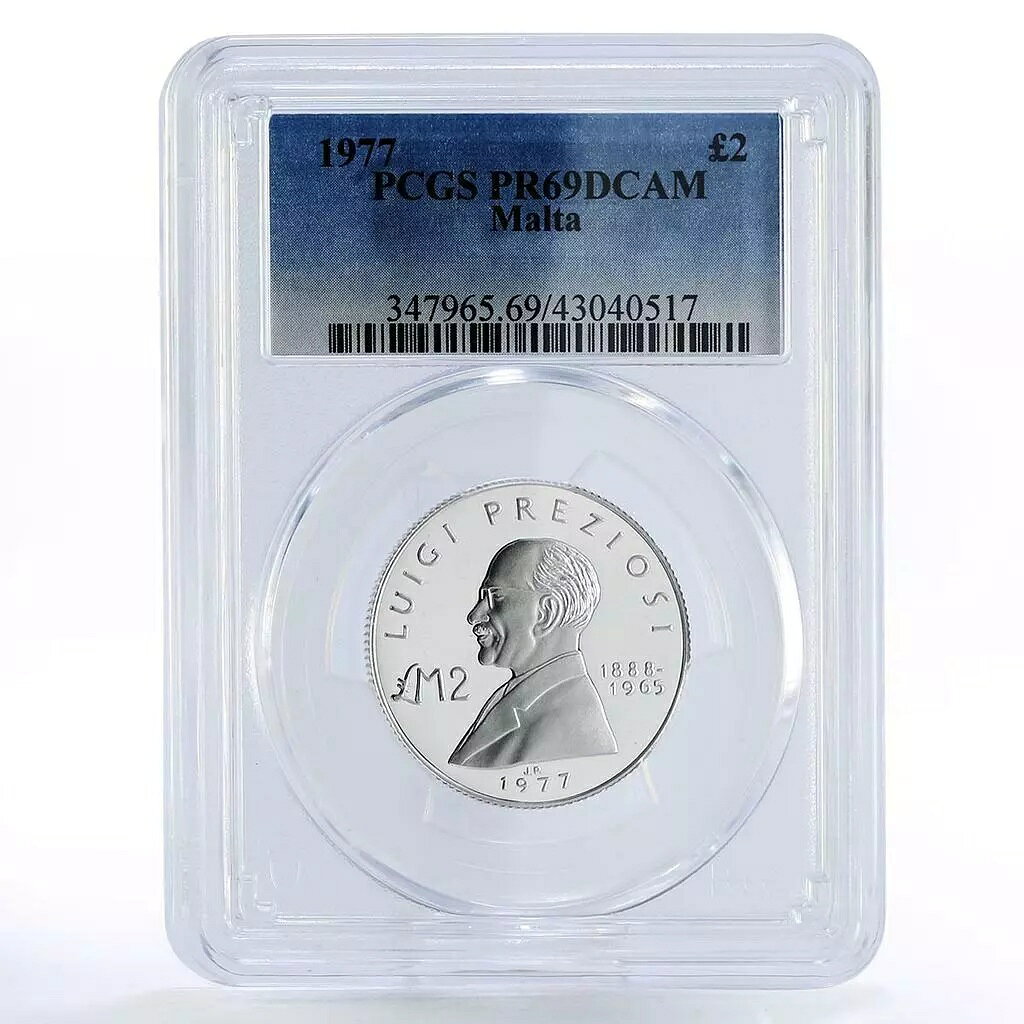 マルタ 2 ポンド ドクター サー ルイージ プレツィオージ PR69 PCGS 銀貨 1977