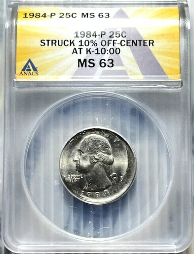 1984年 P ワシントン クォーター オフセンター ミントエラー ANACS MS63