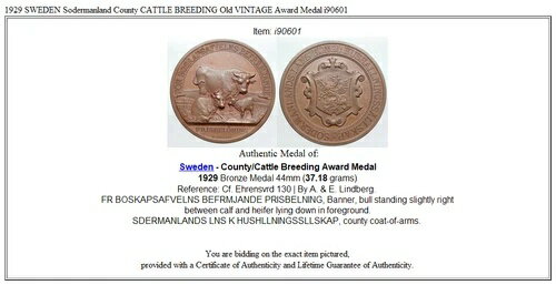 1929年 スウェーデン セーデルマンランド県 牛飼育 オールドヴィンテージ賞メダル i90601