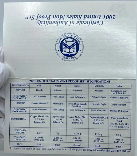 2001年 S アメリカ合衆国 米国造幣局 プルーフコインセット 州クォーター硬貨付き i121170