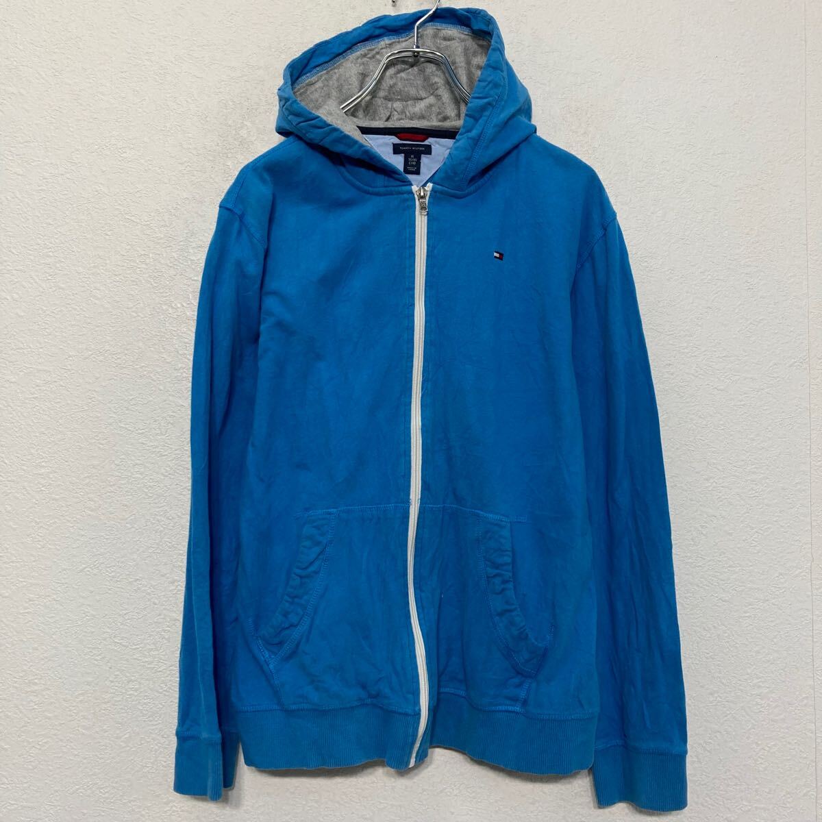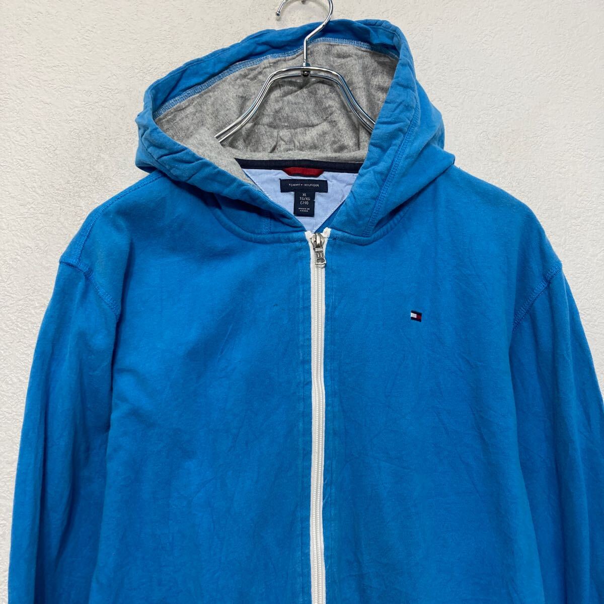 【中古】【古着】 TOMMY HILFIGER プリント スウェット パーカー トミーフィルフィガー キッズ XL ブルー フルジップ ロゴ 古着卸 アメリカ仕入 a610-6753