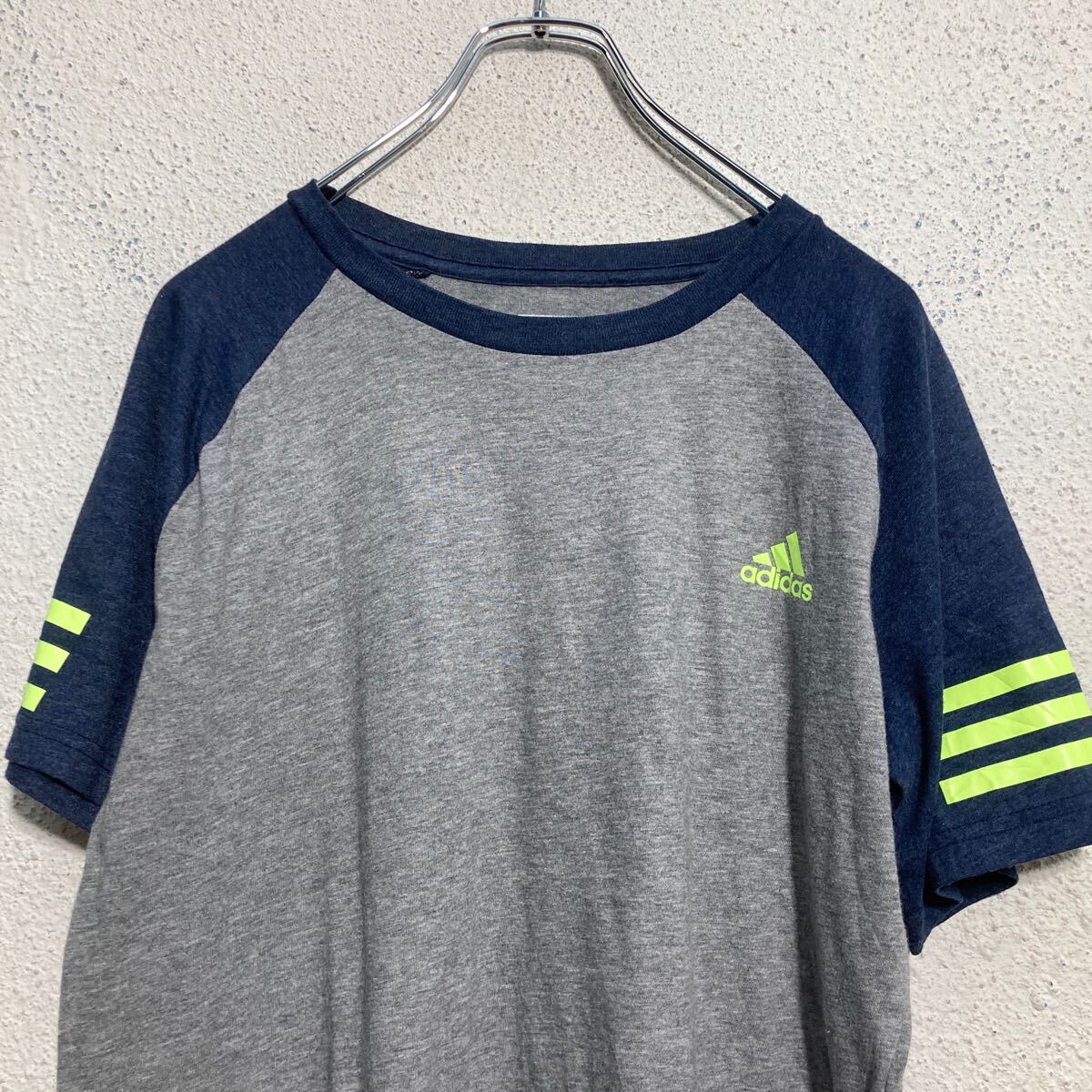 【中古】【古着】 adidas 半袖 ロゴTシャツ キッズ L 150〜 グレー ネイビー ネオンイエロー アディダス 古着卸 アメリカ仕入 a703-5594