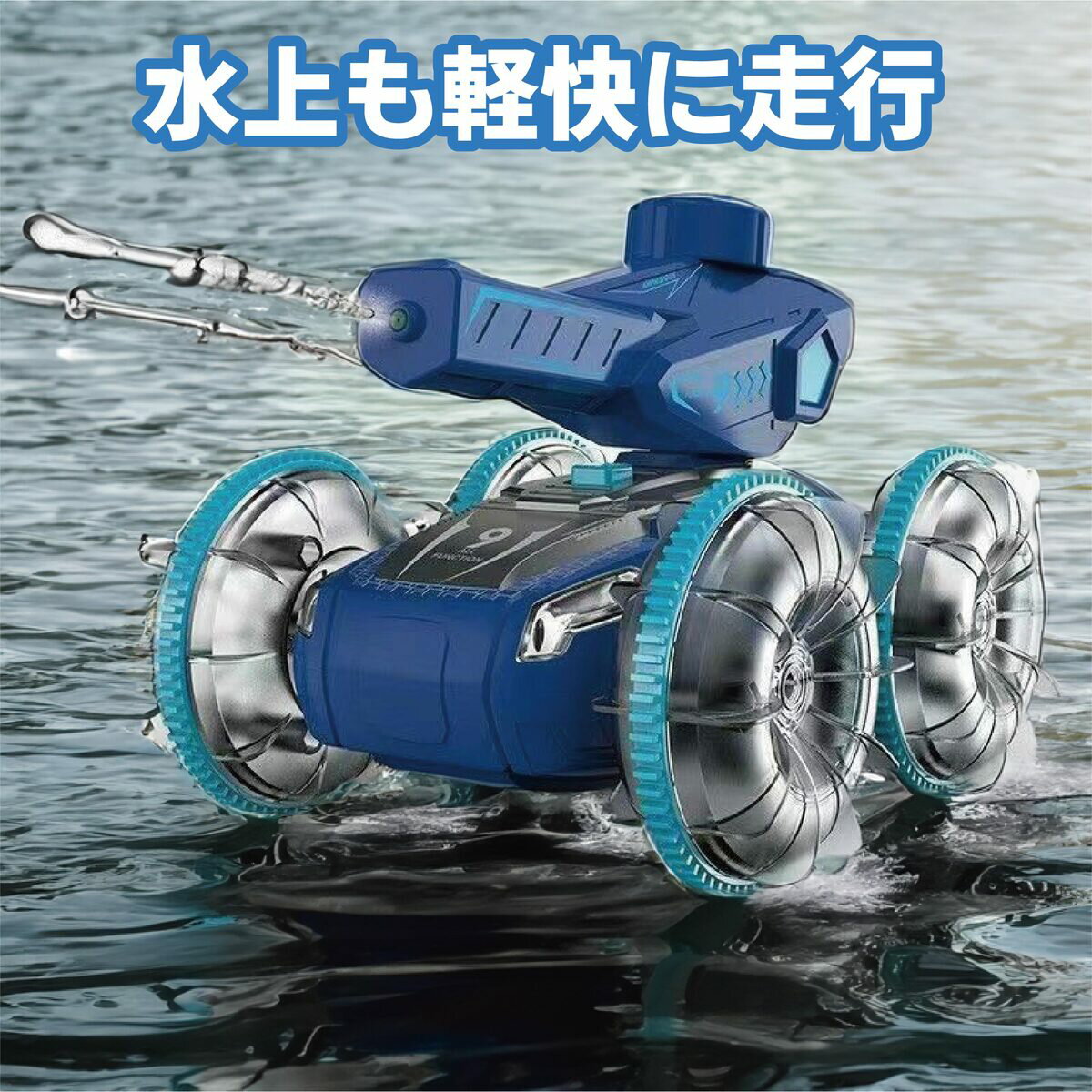 【P10倍】【水鉄砲搭載】水陸両用ラジコンカー ラジコン 水陸両用 水鉄砲 光る ウォーターガン 自動給水 スピン走行 プール 海 湖 360度回転 子供向けおもちゃ 誕生日 夏ギフトに最適