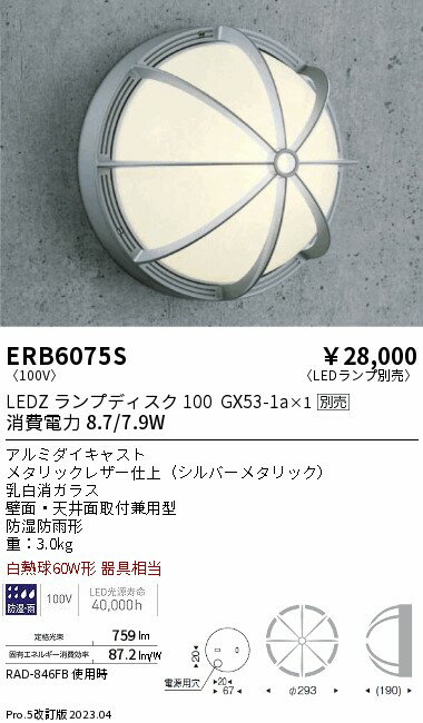 ENDO LEDアウトドアブラケット LEDZランプディスク100用 シルバーメタリック 白熱電球60W形相当 防湿防雨形 ERB6075S(ランプ別売)