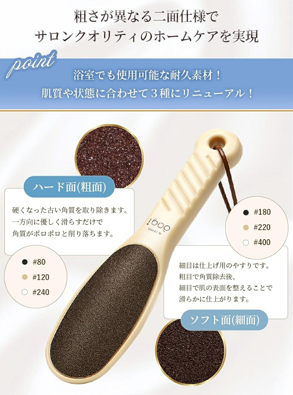 【★お得な3点セット★】 当ストアの単品価格で3点購入するよりもお安くなっております。 【シリーズ累計15万個達成*!サロンレベルのツルピカ素足に】 理想の削り具合と快適な使い心地を実現したフットケアサロン採用の両面仕様の かかとやすり です。軽い力で効率的に角質を除去し、見せたくなるような「すべすべの美しい足」へ。 *2023年12月時点 【簡単2ステップ】かかとの状態に合わせて2種類の面を使い分けて誰でもサロンクオリティの仕上がりに。同シリーズのかかとクリームの併用で、より「 すべすべモチモチかかと 」へ導きます。 【足元専門ブランド aogi】 “フットコンディショニングブランド No1”を目指す関西発のブランドです。 【商品詳細】 本体サイズ:21.5cm×5cm×1.5cm。重さ:88g。 ★【足元から自信が輝く、トータルセルフケア。】★フットケアサロンも推奨する「かかとやすり」で、ガサガサかかとを滑らかに整えたら、次に気遣いたいのが「爪」です。巻き爪専門院監修のニッパー爪切りを使えば、硬い爪や巻き爪も簡単に、美しくカットできます。「かかと」と「爪」の両方を完璧にケアして、清潔感のある美しい足元を手に入れませんか? 関連キーワード : かかと 角質除去 かかとやすり かかとケア 削り フットケア 角質ケア 足 やすり お風呂 対応 かかと削り ガサガサ 角質 ケア ヤスリ 足の裏 角質取り 角質削り グッズ 角質とり 足裏 フットケア用品 踵 裏 ケアグッズ 軽石 プレゼント 誕生日 男性 女性 ギフト 送料無料【商品厳選文言】 かかと 角質除去 かかとやすり かかとケア 削り aogi フットケア 角質ケア 足 やすり お風呂 対応 かかと削り ガサガサ 角質 ケア ヤスリ 足の裏 角質取り 角質削り グッズ 角質とり 足裏 フットケア用品 踵 裏 ケアグッズ 軽石