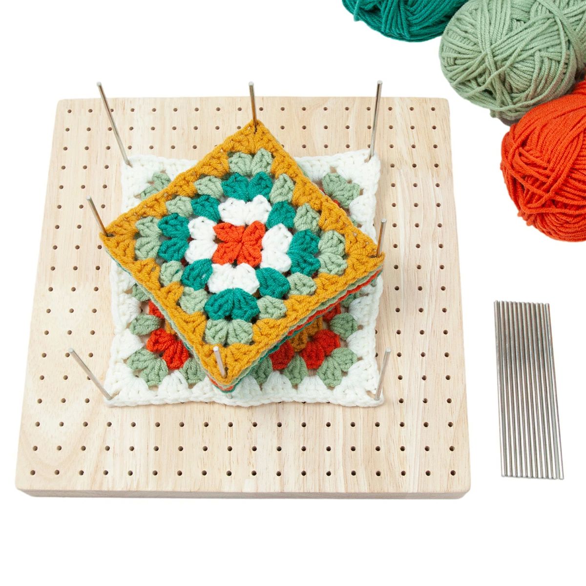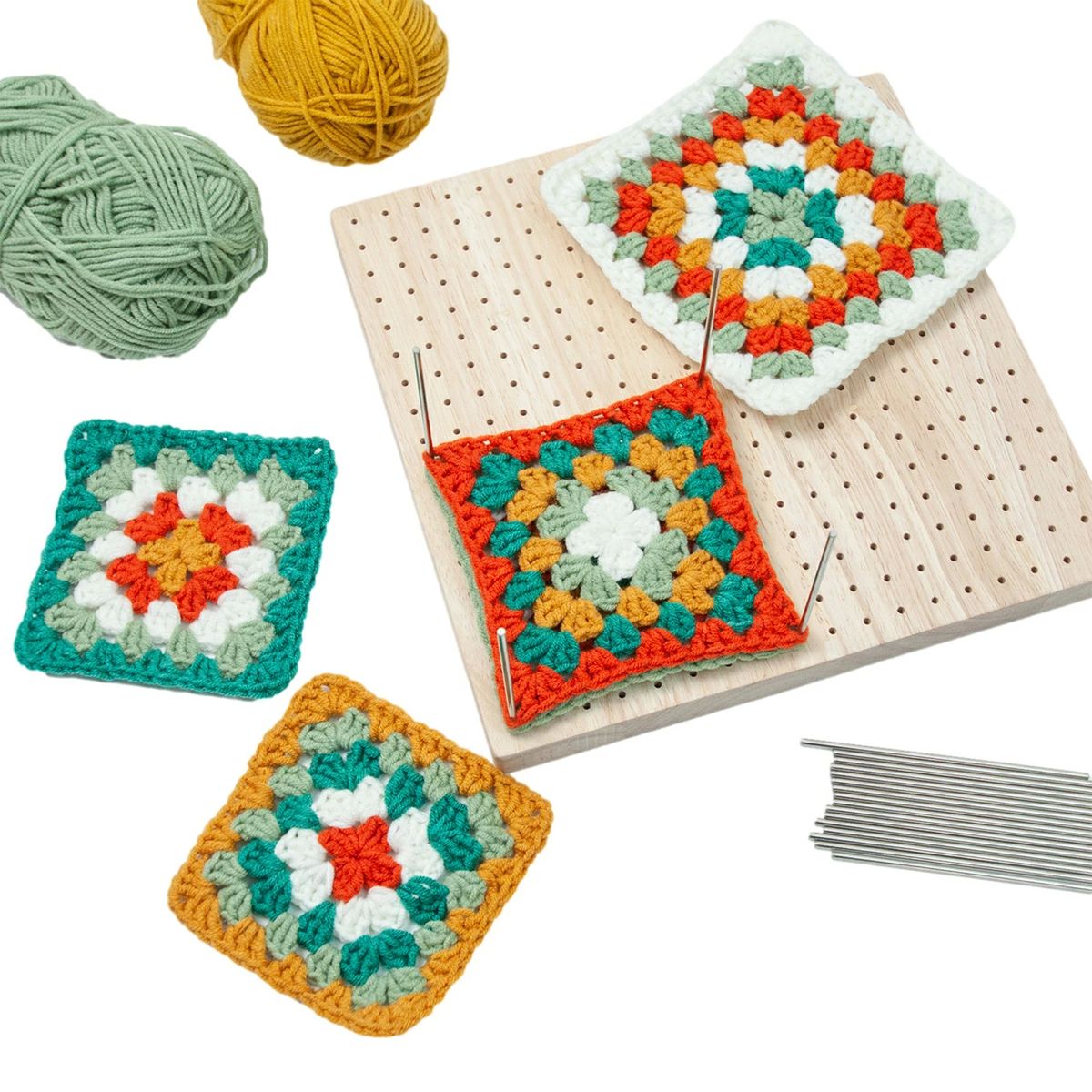 ブ 裁縫編み用 サポートかぎ針編み愛好家向け かぎ針編みブロッキングボード ニードル5本 金属ピン20本 ブロッキングボード 木製