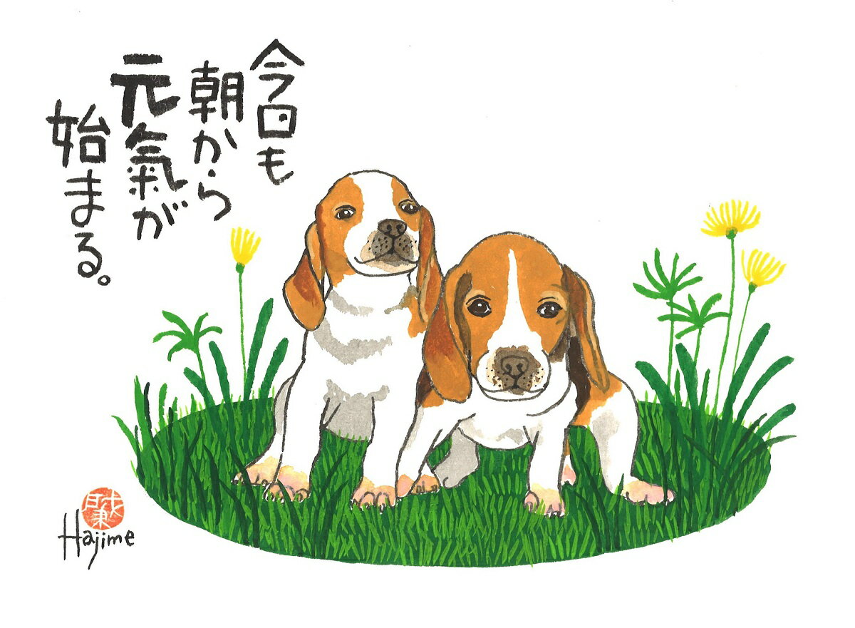 商品情報 手描き作品 絵柄サイズ:190×262(mm)額付サイズ:323×415(mm)額縁カラー:薄茶色マット色見:アイボリービーグル DOG 太子額付【送料無料】 岡本 肇 手描き作品 絵画 水墨画 作家オフィス「和味文化研究所」直営店[アート インテリア 壁掛け 壁飾り 装飾 額縁][犬 ペット ネコ ねこ 猫 動物 プレゼント ギフト] 直筆作品 額入り犬好きの方には見逃せない癒し感タップリの作品です。☆プレゼントにもお勧め ☆無料ギフト対応可 水墨書画家 岡本肇 の手描きオリジナル作品です。おちゃめな性格で、褐色の瞳は優しくて可愛い。見つめられるとメロメロに!スヌーピーのモデルになった犬としても知られています。ビーグル「今日も朝から 元気が始まる。」【絵柄サイズ】190×262(mm)【額付サイズ】323×415(mm)【額縁カラー】薄茶色お部屋のインテリアとして絵を飾り、ほのぼのとした和みの空間を演出してみませんか?絵を飾る/絵を換える、ほんの少しの作業でお部屋の雰囲気も気分も簡単に変えることが出来ます。 是非、お試しください!また、贈り物としてもお勧めです◎◆岡本肇プロフィール◆大阪生まれ。空間プロデューサー、トレンドクリエーターとして活躍。中国吉林省との文化交流で篆刻・書を学び、水墨書画家としても活動を開始。水墨ポップアートなる独自の画風で、招福縁起物・猫をモチーフとした書画作品展を各地で開催している。カレンダーや和雑貨で人気の猫のキャラクター「Kabamaru」の作者でもある。 2