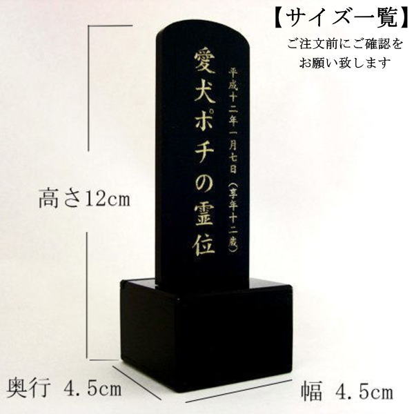 コンパクトなサイズのペット専用位牌(手元供養収納スペース付)です。 場所を取らず置いて頂けるので、自宅でもそばにおいて大切なペットを供養して頂けます。【手元供養】 位牌の台座は、お守りや形見として、 「火葬後の遺灰(一部)や歯、毛(火葬前)」などを収納できるスペースになっています。 オーダー商品になりますので、刻印内容確認後、1週間前後で発送の予定でございます。 日本製 サイズ 約たて12cm よこ4.5cm奥行4.5cm(台座部分を含む) 材質 ・本体アクリル板