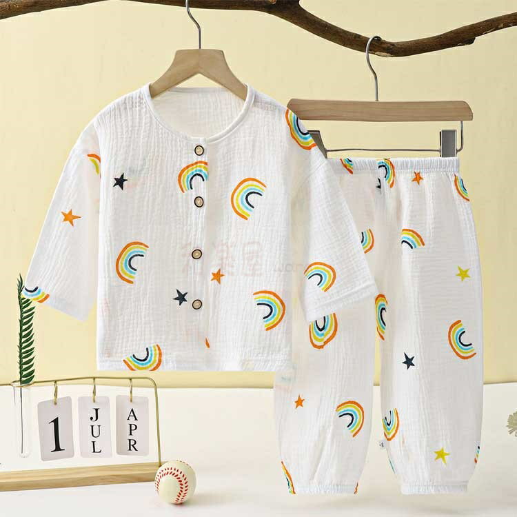 【送料無料】ガーゼ パジャマ 前開き ボタン 春夏秋 子供 綿 コットン 長袖 半袖 ベビー キッズ 子供 ルームウエア 七分袖 上下セット 女の子 男の子 幼稚園 保育園 通園 春 夏 夏用 80 90 100 110 120 130 140 150