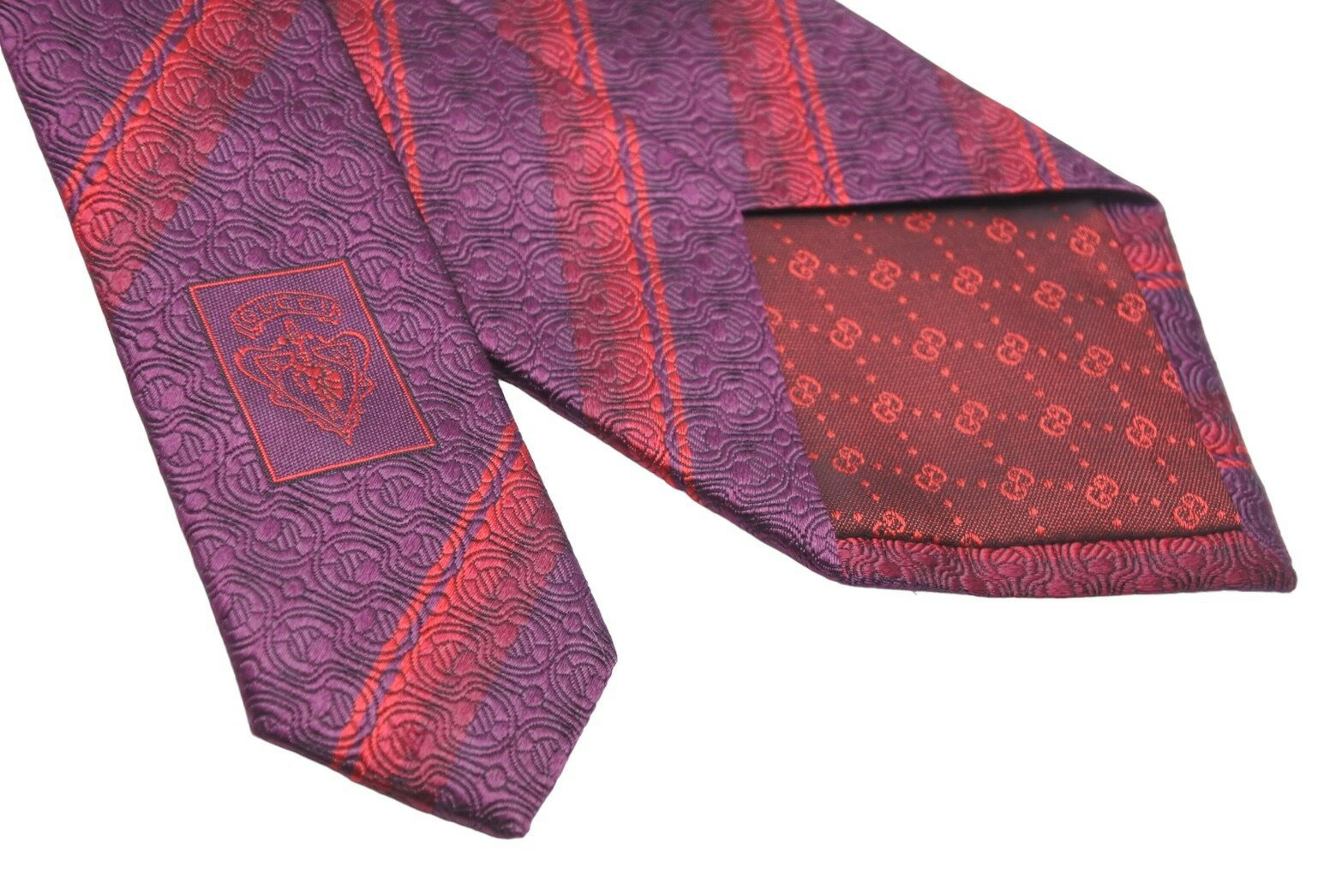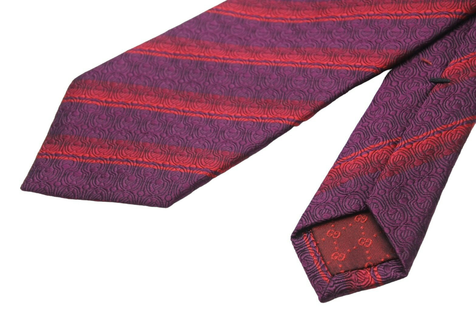 GUCCI グッチ ネクタイ ストライプ 総柄 GG トムブラウン期 シルク レッド パープル 美品 中古 51818