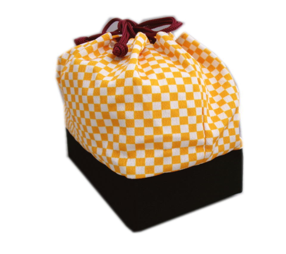巾着 バッグ 底かご ちりめん 山吹色白市松 卒業式 袴 着物 和柄 長方形 女性用 レディース はかま ハカマ きもの 総柄 和装 和服 市松柄 古典柄