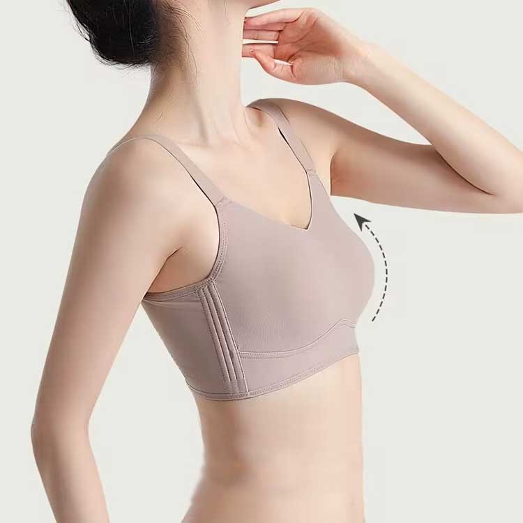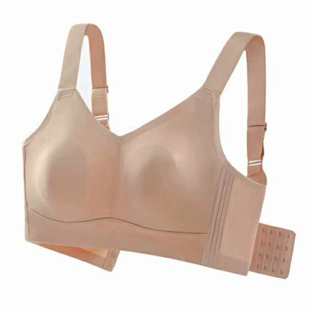 胸が小さく見えるブラ・締め付けなく快適・肌に優しい脇にできる段差・胸元にできる段差をしっかり収納。 上半身をすっきり見せてくれるので着痩せ効果も抜群です。パネルの下部でバストを下から支えて、パネル上部に分散させることで、圧迫なくバストの揺れを抑えます。蒸れにくい小さくで薄くて軽いパッドは蒸れ熱いを防ぐので、暑い夏に使用しても息苦感じない。【軽量でコンパクトに】丸められるので持ち運びに便利!【ストレッチの効いたサイドベルト】脇肉をしっかリキャッチしスッキリシルエット。 サイズ M L XL 2XL 3XL サイズについての説明 サイズ:M=34/75BCD、L=36/80BCD、XL= 38/BCD、2XL=40/BCD 、3XL=42/BCD。 素材 ナイロン、スパンデックス 色 ベージュ ブラック パープル キャメル 備考 ●サイズ詳細等の測り方はスタッフ間で統一、徹底はしておりますが、実寸は商品によって若干の誤差(1cm〜3cm )がある場合がございますので、予めご了承ください。 ●商品の色は、撮影時の光や、お客様のモニターの色具合などにより、実際の商品と異なる場合がございます。あらかじめ、ご了承ください。 ●製品によっては、生地の特性上、洗濯時に縮む場合がございますので洗濯時はご注意下さいませ。 ▼色味の強い製品によっては他の衣類などに色移りする場合もございますので、速やかに(脱水、乾燥等)するようにお願いいたします。 ▼生地によっては摩擦や汗、雨などで濡れた時は、他の製品に移染する恐れがございますので、着用の際はご注意下さい。 ▼生地の特性上、やや匂いが強く感じられるものもございます。数日のご使用や陰干しなどで気になる匂いはほとんど感じられなくなります。