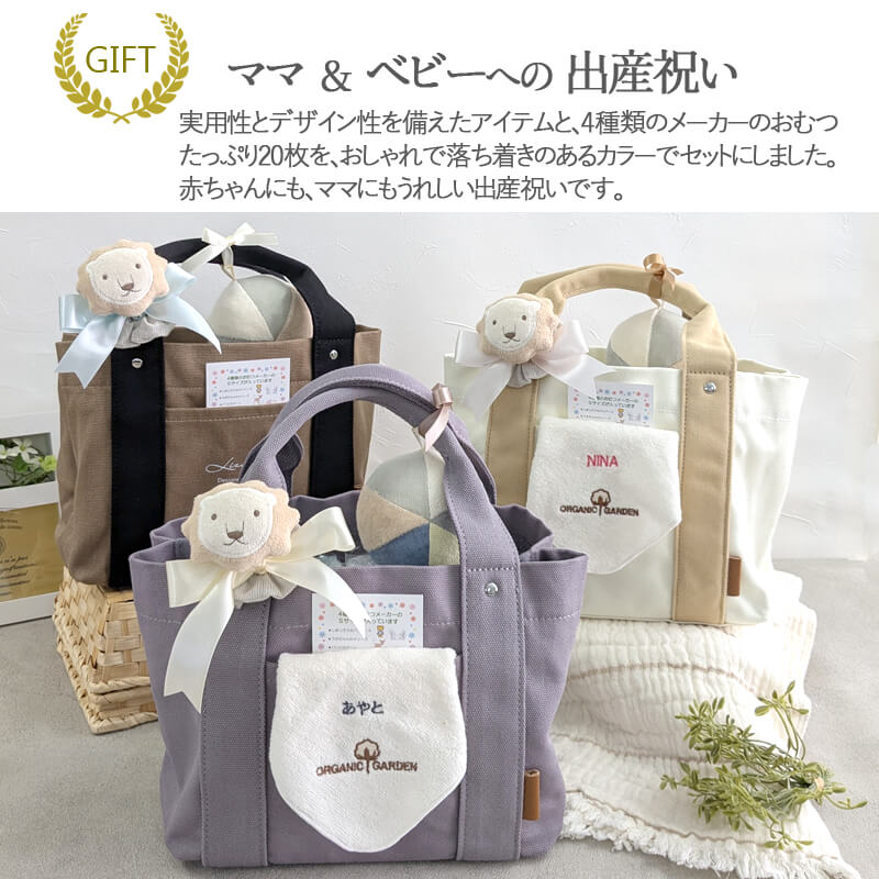 おむつケーキ 出産祝い セット トートバッグ おむつバッグ オムツケーキ かわいい ナチュラル 男の子 女の子 男 女