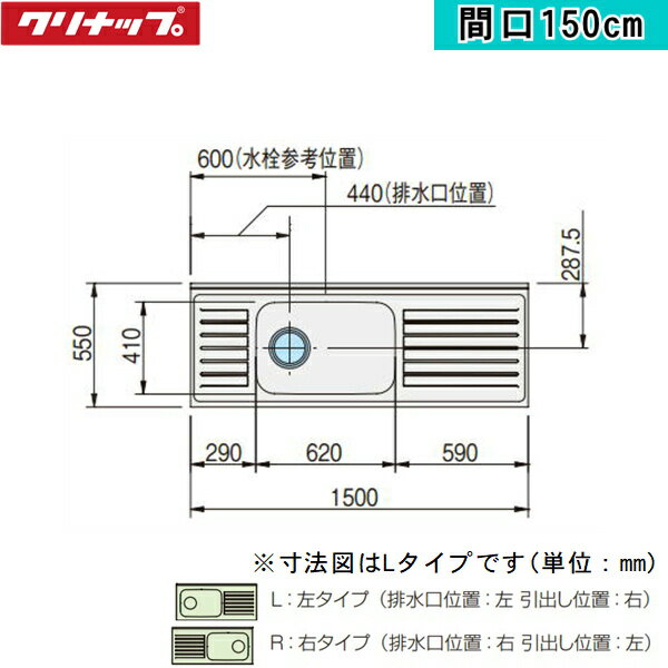 お届けはメーカー直送便となります。ご購入前に必ず、メーカー直送便Aの詳細をご確認下さい。 クリナップ[CLEANUP]木キャビキッチン クリンプレティ GTS-150MFL 流し台 間口150cm 左タイプ(排水口位置:左、引出位置:右) 扉カラー:GTS(ホワイト) 寸法:幅1500x奥行550x高さ800mm 素材:扉面/低圧メラミン化粧板 取手/ABS樹脂(アイボリー色) 流し台の天板/ステンレス(SUS430) ※画像はL(左タイプ)ですCLEANUP GTS 150MFL