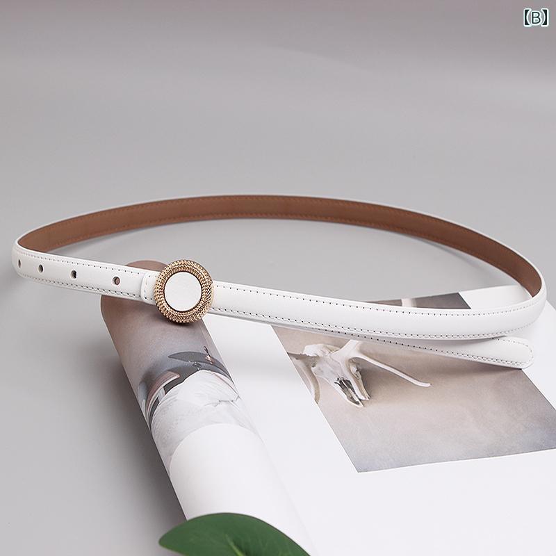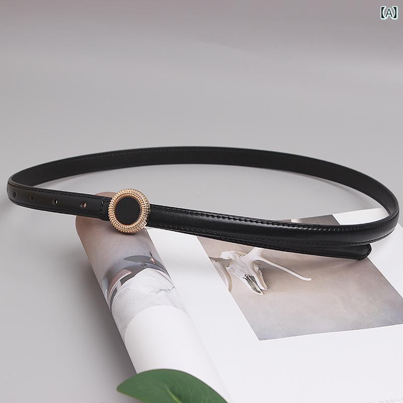 ベルト シンプル 装飾 レトロ ラウンド バックル 二層 牛革 レディース ファッション アクセサリー カジュアル ベルト ウエスト バンド スリム カジュアル