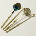 香道具 セット 銅 3点 線香 蓮 ベゴニア 香炉 灰押 リビング リラックス 寝室 ヨガ 初心者 入門 茶室 仏具 ブラシ スプーン 孔雀 羽