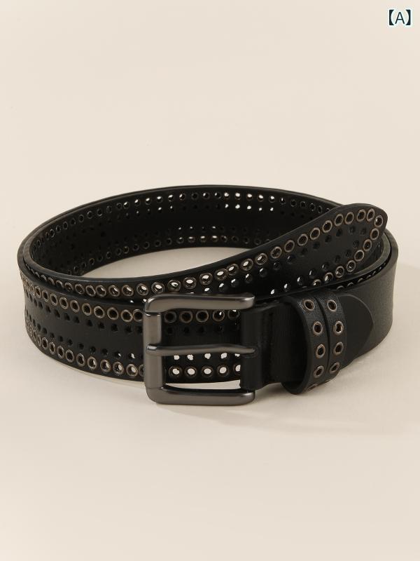・主な素材: PUレザー・バックル素材: 合金・留め具タイプ: ピンバックル・スタイル: オリジナルデザイン・デザイン要素: 円形・デザイン要素カテゴリ: 形状、パターン・加工方法: ビーズ装飾、パンチング、メッキ加工・カラー展開: ブラック、ブラウン・幅: 約2-4cm・長さ: 102cm、112cm、122cm