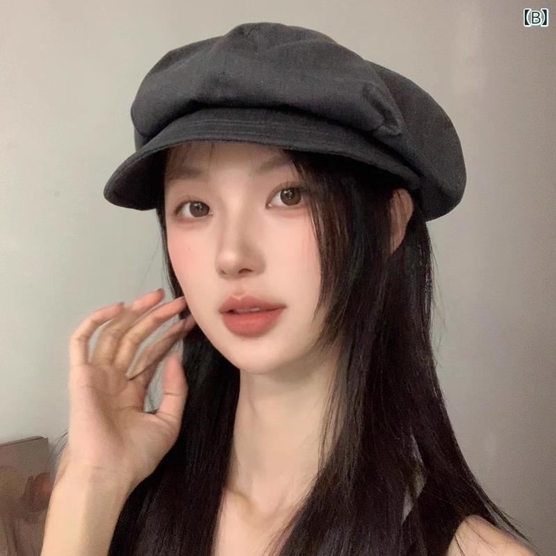 キャスケット レディース レトロ ヴィンテージ 小顔効果 すっぴん隠し 秋冬 つば付き 防風 日よけ 通勤 カジュアル エレガント 高級感 コットンブレンド 調節可能