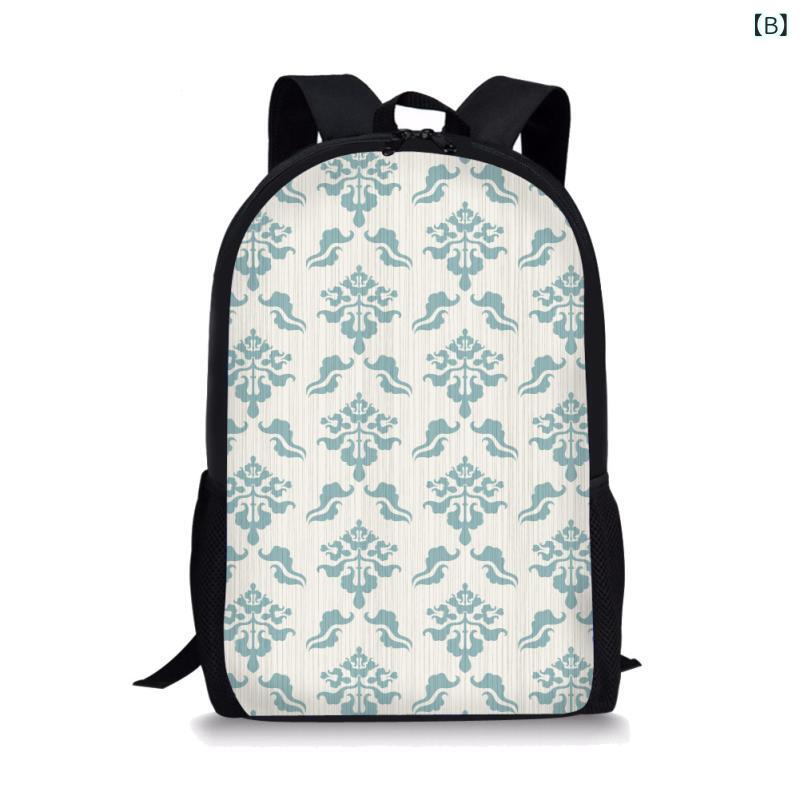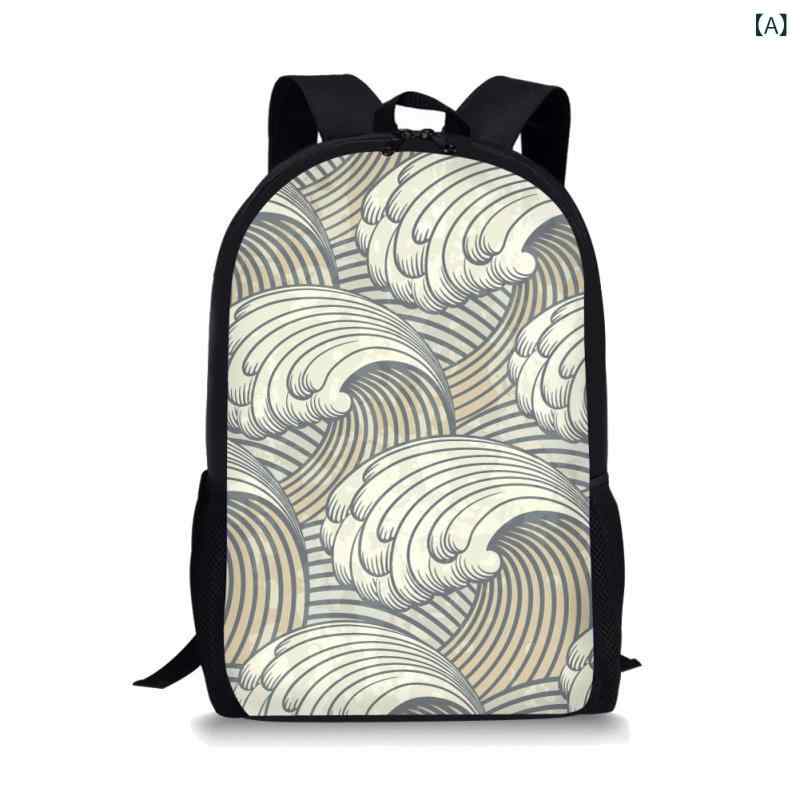 リュックサック キッズ 子供用 バックパック デイパック レトロ 波 ウェーブ柄 プリント 総柄 スクール風 カレッジスタイル ポリエステル 通学 普段使い お出かけ 原宿系 ユニーク