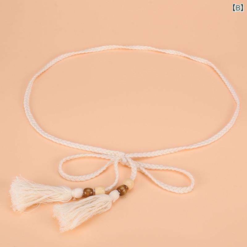 ベルト レディース コットンリネン 綿ロープ 編み込み ウエストチェーン 腰紐 ワンピース ドレス 細め ロング 結び タッセル フリンジ おしゃれ ナチュラル ブラック アイボリー 春夏