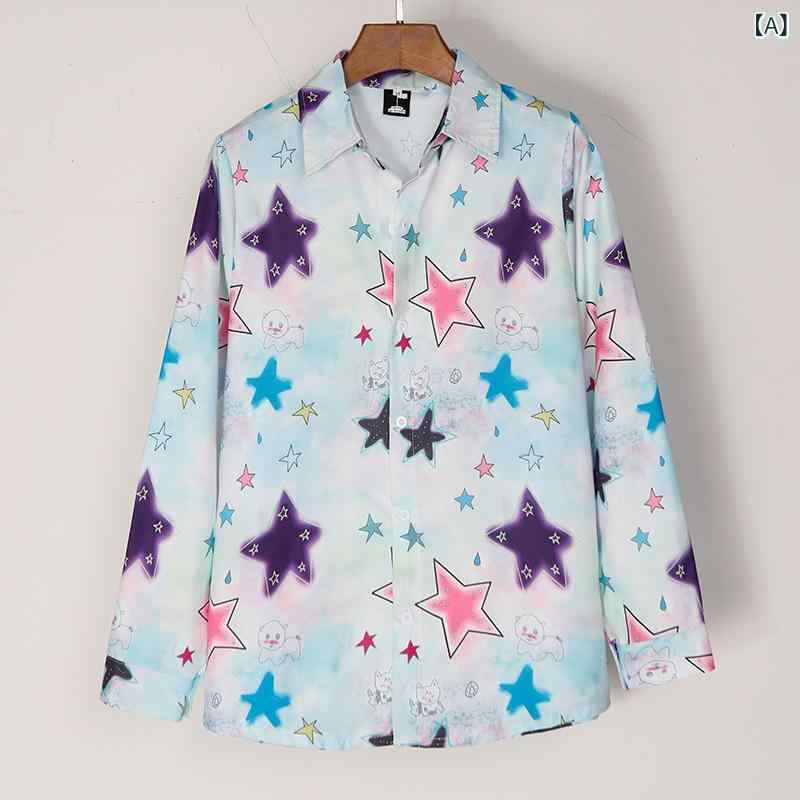 ・カテゴリ: シャツ・スタイル: 中国トレンド・タイプ: カーディガン・フィット: ルーズフィット・ネックライン: 襟付き・袖丈: 長袖・柄: 星柄・ディテール: プリント・主な素材: ポリエステル・素材混率: ポリエステル96%以上・サイズ展開: M, L, XL, XXL・加工: プリント/染色