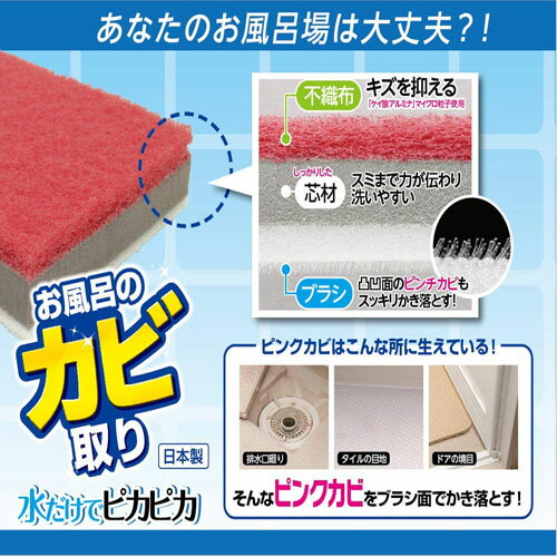 -------------------------------------------------------------- 画像はイメージです。 ※ PC環境により実際の色味や質感と異なって表示される場合がございます。 ※ 部品・パーツなどの一部の商品では本体の商品画像を使用しております。 ※ 製品の仕様・画像・パッケージは、メーカー側から予告なく変更される場合があります。 -------------------------------------------------------------- ピンクカビをスッキリかき落とす !■ 微粒子研磨材不織布使用で、水だけでキズを抑えてカビをかき落とします。■ 赤い不織布面は壁面のカビに、白いブラシ面は凸凹面のピンクカビにおすすめです。■ スポンジでは洗えない細かな凸凹面に残った汚れをブラシでかき落とします。■ 力の入れやすい薄型タイプです。角が洗いやすく水切れが良い形状になっています。■ 保管に便利なヒモ付きです。お掃除の後は浴室のフック等に引っ掛けて収納できます。※すべてのカビを落とせるわけではありません。※メーカーの都合により、パッケージ・仕様等は予告なく変更になる場合がございます。■ 仕様商品サイズ:W75×D25×H170mm内容量:1個材質・成分:不織布:ナイロン、芯材:ポリエチレン、スポンジ:ポリウレタン、ブラシ:ナイロン・ポリエステル、ヒモ:アクリル 生産国:日本 【メーカー・ブランド】 TOWA / トーワ / とうわさんぎょう 【#150】