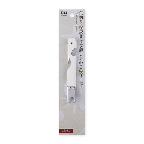 -------------------------------------------------------------- 画像はイメージです。 ※ PC環境により実際の色味や質感と異なって表示される場合がございます。 ※ 部品・パーツなどの一部の商品では本体の商品画像を使用しております。 ※ 製品の仕様・画像・パッケージは、メーカー側から予告なく変更される場合があります。 -------------------------------------------------------------- 1台3役!■貝印の1台3役のオープナーです。■缶切り、栓抜き、プルタブ・プルトップや缶の蓋おこしができます。【仕様】本体サイズ:124×17×12mm重量:50g材質:本体:普通鋼(メラミン焼付塗装)刃部:普通鋼(クロムメッキ)起こし:普通鋼(ニッケルメッキ)生産国:日本【注意】・メーカーの都合により、パッケージ・仕様等は予告なく変更になる場合がございます。 【メーカー・ブランド】 貝印 / カイジルシ / かいじるし / KAI 【#150】