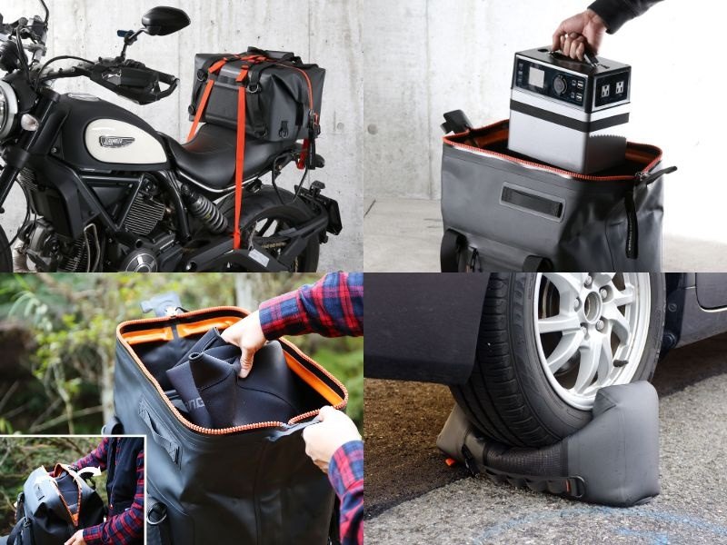 ■商品概要【カラー】ブラック【サイズ】W45×D30×H27cm【製品総重量(付属品含む)】1.77kg【容量】35L【静止耐荷重】10kg【材質】TPU【付属品】ショルダーベルト×1set、固定用ベルト×1set、ファスナー潤滑剤×1【原産国】中国■詳細説明■ハードユースに耐える「密閉×強靭」を兼ね備えた、IPX7超防水ダッフルバッグ水だけでなく空気さえも密閉してしまう気密性の高さ。多くの荷物が収まる大容量38L。普段使いをはじめアウトドアやツーリング、あらゆるアクティビティーの環境下でハードユースに耐える強靭なTPU素材。そして風雨による浸水を徹底的にブロックする防水規格IPX7の防水ファスナー。防水性が強く求められるバイク用バッグのノウハウから誕生した、ハイエンド防水バッグシリーズ。■絶対に濡らしたくないモノの収納・保管・運搬に過酷な環境下での使用に耐え、軽量かつ引き裂き強度にも優れる強靭なTPU素材。そして雨などの浸水から徹底的に内容物を保護する防水規格IPX7の防水ファスナーを採用したシリーズ最強クラスのタフネスバッグ。アウトドアやツーリング、マリンアクティビティーなどの屋外での使用の他、防災用品や備蓄品、リチウムイオン蓄電池などへの水害対策にも最適です。■シリーズ最強の防水レベル・IPX7防水ファスナーメインファスナーはIPX7をクリア。IPX7とはJIS規格で「一時的(30分)に一定水深(1m)の条件に水没しても内部に浸水しない」に耐える保護等級です。ドッペルギャンガーテストでは高圧洗浄機による噴射テストを実施。バッグ内部への浸水もみられず、必要十分な防水性が確認されました。■ガバっと開く「がま口構造」メインファスナー部は開口部を大きく展開できる「がま口機構」を採用。ダッフルバッグの平面寸法と同じ大きさで開口でき、荷物の出し入れが行いやすいだけでなく内容物が確認しやすい独自設計です。■ファスナーだからワンアクション一般的な防水バッグのロールトップ構造に比べ、操作性に優れるファスナータイプ。バッグの開閉都度、入口を巻き上げる煩わしさがありません。■空気漏らさない超気密性・型崩れしないTPU素材弾力性と強靭性に加えて、高い防水性を持つ900D(デニール)TPU(サーモ プラスチック ポリウレタン)素材。過酷に使っても型崩れしないヘビーデューティ仕様で、乗用車で乗り上げてもエア漏れしない極めて高い気密性を誇ります。■様々なバッグスタイルに対応マリンアクティビティやアウトドア、ツーリングなど様々なシーンに対応する多彩な運搬スタイル。手提げでの持ち運び、付属のショルダーベルトを利用したリュックスタイルの他、バイクへの積載に配慮した固定用ベルトが標準付属します。・リュック:ショルダーベルトを接続したリュックスタイル。・ハンドショルダー:ハンドベルトで手提げの運搬スタイル。・シートバッグ:固定用ベルトを活用して防水シートバッグとして。< 製品特徴 >■大型ファスナータブメインファスナーの開閉をグローブの着用状態でも操作しやすい大型ファスナータブ。■メッシュポケットバッグの外側に、出し入れの頻度が高い小物などの収納に便利なメッシュポケットを備えます。■前面ポケット(防滴)バッグの前面には出し入れの頻度の高い小物の収納に便利なポケットを設けます。■大型Dリングバッグ積載時にベルトストラップを経由させることで確実な固定が行える38mm大型Dリング。■内部メッシュポケット小物の収納に便利なメッシュポケットは、バッグ前背面の内部に2箇所備わります。■デイジーチェーンバッグの前面にデイジーチェーンを装備。荷掛けベルトの経由ポイントや、TPUバッグとのドッキングに対応。■固定用ベルトバッグの積載に利用できる固定用ベルトが標準付属。< 使い方 >■TPUシリーズの組み合わせTPUウォータープルーフバッグシリーズは、組み合わせでバッグ容量の拡張や、ストレージ別に荷室の増加など、ユーザーの用途・目的によってカスタマイズに対応します。■ファスナーの開け方防水ファスナーは防水性と気密性の高い特殊なファスナーを採用しています。無理な開け締めはファスナーの破損につながるため、必ずゆっくりと操作を行ってください。■防水ファスナーのメンテナンス方法防水ファスナーは付属の潤滑剤をご使用前に塗布してください。メンテナンスは定期的に行ってください。・防水ファスナーを全開にします→スライダーの前部に潤滑剤を塗布します→ファスナーを数回開閉し、潤滑材を馴染ませます□検証用動画(防水性)メインファスナーに約1分間、高圧水を噴射してバッグ内部への浸水の有無を確認するドッペルギャンガーテスト動画。高圧洗浄機仕様:吐出水量:最大360L/h、モーター出力:1.25kW、最大許容圧力:最大360MPa※IPX7...■注意点※画像・動画には他のタイプが含まれている場合があります。※画像のグリムロックは付属しません。※検証についてはバッグが初期状態での検証であり、防水性・気密性を長期的に保証