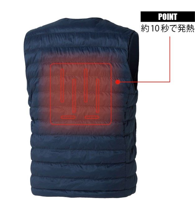 ■商品概要・電熱ベスト・サーマルギア【カラー】ブラック【素材】ポリエステル【サイズ】男女兼用【素材】表地:ナイロン100%裏地:ナイロン100%中綿:ポリエステル100%●ウェアにケーブル付き●3段階温度調節強(レッド):約60度中(オレンジ):約50度弱(ブルー):約40度●動作時間BTSP使用時:強(約8時間)、中(約8.3時間)、弱(約11時間)NANOBT2BK使用時:強(約4時間)、中(約4.2時間)、弱(約5.5時間)■詳細説明PRO SOFTTHERMAL GEAR?発熱防寒ベスト・薄くて軽いダウンライクな中綿・インナーとしてはもちろん、アウターとしても着用可能空調服のバッテリーが使用でくる発熱防寒ベスト。夏も冬も同じバッテリーがが使用でき、便利です。薄くて軽いダウンライクな商品。Vネックタイプでビジネスシーンでもご使用いただけるデザイン。低温やけど防止の高機能。※強モードで90分間使用した場合、自動で中モードへ切り替わり低温やけどを防ぎます。バッテリーを外し、ケーブルのコネクター部分の防水キャップをはめれば洗濯ネットにいれて丸洗いが可能です。曲げても丸めても大丈夫なヒーターを使用しております。約0.5mmの薄いフィルム状なのでウェアを着用したときのストレスがありません。■注意点※温度は外気温等の使用環境により変化します。※この素材は火気に弱いので、火気を扱う環境では着用しないでください。※バッテリー、その他のオプションは「別売り」です。※バッテリー対応機種については、画像をご参考ください。※実際のウェアの色は画像の表示色とは若干異なります。ご了承ください。※メーカー都合により商品の仕様変更がある場合がございます。ご了承ください。※画像には他のカラーが含まれています。