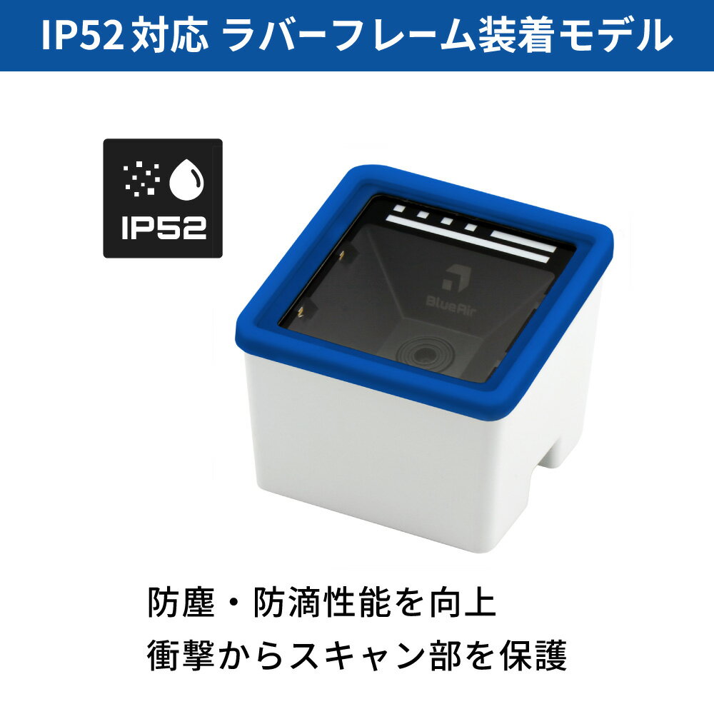 QRコードリーダー BLUEAIR-E-BTB-FBL バッテリ搭載Bluetooth ラバーフレーム付 IP52対応 メモリ搭載 卓上 電子チケット 2年保証 ウェルコムデザイン 業務用 法人様向け