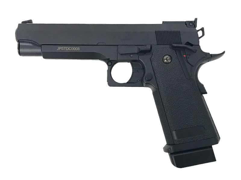 電動ハンドガン、ハイキャパが登場!フルオートも打てるんです!【中古・ランクA】室内使用のみや目立つ汚れや傷がなく、わずかな作動痕程度の美品です。中古品としてはキレイな商品です。【中古・欠品なし】箱・説明書・付属のマガジン等が全て揃っている商品です。ただし、保護キャップ、試射用BB弾、汎用品レンチ等の消耗品や、ハガキ等の書類については欠品に数えておりませんので、商品写真に写っているかどうかに関わらず付属しないことがあります。この商品の他の状態中国製の商品★☆トイガン本体購入の方にプレゼント☆★※ブローバックモデルではございませんのでご注意ください。【商品詳細】・材質:スライド メタル/フレーム 樹脂・全長:約225mm・重量:約750g・付属マガジン装弾数:36発・可変HopUp・セレクター:セミオート/フルオート・コネクター:BEC製品参考画像1 製品参考画像2 製品参考画像3 製品参考画像4 製品参考画像5 製品参考画像6 製品参考画像7 製品参考画像8 製品参考画像9 製品参考画像10