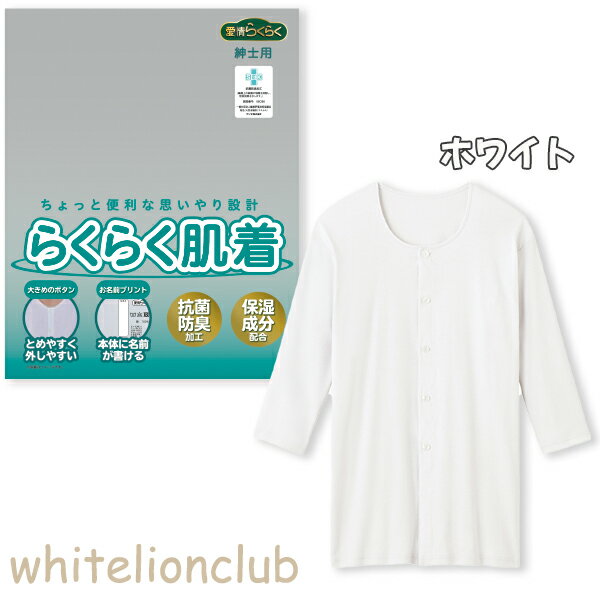 ちょっと便利な思いやり設計 らくらく肌着。 とめやすく外しやすい、大きめのボタン。 着やすく、脱ぎやすい 療養中の方、ご年配の体調を考え、 負担を軽くする設計にした肌着。 ゆったり設計で着替え、着せかえが簡単。 ゆったり大きめの袖付で着脱がラク。 本体に名前が書けるスペースがあります。 取扱い表示もプリントなので肌あたりやわらかです。 【関連キーワード】 介護インナー グンゼ 愛情らくらく らくらく肌着 男性用 7分袖 ボタン付き 前あき シャツ HWB218 GUNZE 七分袖 介護 メンズ 紳士 男性 肌着 下着 インナー 介護 抗菌防臭 保湿成分配合 大きめボタン 入院 病院 介護施設 綿100% 送料無料 送料込 お試し お試し価格 綿100%(フライス<抗菌防臭加工+保湿成分配合>) M・L・LL ホワイト・グレー ※PCモニターの発色の具合によって、 実際のものと色が異なる場合がございます。 関連商品介護インナー グンゼ 愛情らくらく らくらく肌着 男性用 7分袖 ワン...介護インナー グンゼ 愛情らくらく 着替えらくらく肌着 男性用 半袖 ...2,450円3,000円グンゼ 愛情らくらく 7分袖 ボタン付き シャツ 前あき 綿100% ...グンゼ 愛情らくらく 7分袖 シャツ 前あき 綿100% 保湿 抗菌防...2,200円2,200円介護インナー グンゼ 愛情らくらく 着替えらくらく肌着 男性用 7分袖...介護インナー グンゼ 愛情らくらく 着替えらくらく肌着 男性用 ワンタ...3,350円3,350円介護インナー グンゼ 愛情らくらく らくらく肌着 男性用 半袖 ワンタ...介護インナー グンゼ 愛情らくらく らくらく肌着 男性用 半袖 ボタン...2,200円2,200円グンゼ 愛情らくらく 7分袖 着がえらくらく 前開き 綿100% S/...グンゼ 愛情らくらく 7分袖 シャツ 着がえらくらく 大きめボタン 綿...3,080円3,080円