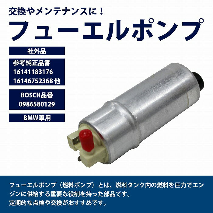 商品説明 フューエルポンプが壊れると、燃料をエンジンに送ることができず車が動かなくなります。 エンジン不動、エンスト、ポンプ異音などの症状が現れましたら交換目安です。 突然のエンジン停止や経年劣化などによる故障や破損を防ぐためにも 定期的にフューエルポンプを点検・交換することが大切です。 ※取り付けに一部加工が必要となる場合がありますので、あらかじめご了承ください。 商品内容 燃料ポンプ フューエルポンプ×1個 【参考品番】 ◆純正品番 1614-6752-368 (16146752368) 1614-1183-176 (16141183176) 1614-1183-216 (16141183216) 722013020 ◆Bosch品番 0986-5801-29 (0986580129) ◆適合車種情報 メーカー:BMW 車名:5シリーズ E39 型式:530i ※適合車両は目安です。 年式、仕様などにより適合品が異なる場合がございます。 ご注文いただく前に、 必ず純正品番号から適合をお確かめください。 なお、弊社でも適合確認を承っております。 【お問い合わせフォーム】またはお電話にて車台番号をお知らせください。 なお、車種やメーカーによっては回答できないものもありますのでご了承ください。 送 料 送料:送料無料 (沖縄・離島・一部地域は別途送料加算となります) ※配送業者様のご指定はお受けできません。 保証について ※商品到着後、7日間の保証期間 お届けした商品に万一、不良・誤送・不備等あった場合、早急に対応させていただきます。 商品がお手元に届きましたらご確認をお願い致します。 期限が過ぎた場合は、いかなる場合でも対応できません。 ※お客様都合による返品・交換はお受けできませんのでご了承ください。 注意事項 必ず以下の注意事項をご確認ください。 ご注文は、同意の上されたものとさせていただきます。 注意事項について 商品が到着しましたら、必ず商品内容をご確認ください。 ◆お問い合わせフォーム、またはお電話にて適合確認を受け付けております。 ◆ご注文いただく前に、 必ず純正品番号から適合をお確かめください。 ◆商品ページに記載の適合車両はあくまで目安となります。年式、仕様などにより適合品が異なる場合がございますのでご了承ください。 ◆販売のみとなりますので、取付や使用方法などのサポートはお受けできません。 ◆入荷時期により予告なく商品仕様が変更される場合がございます。 ◆専用品ではございますが、純正品ではない為、装着部の形と完全一致にはならない場合もありますのでご了承の上購入ください。 ◆弊社商品不良によって起因した工賃の補償はございません。 また、商品以外の費用の補償もできませんので、予めご了承下さい。