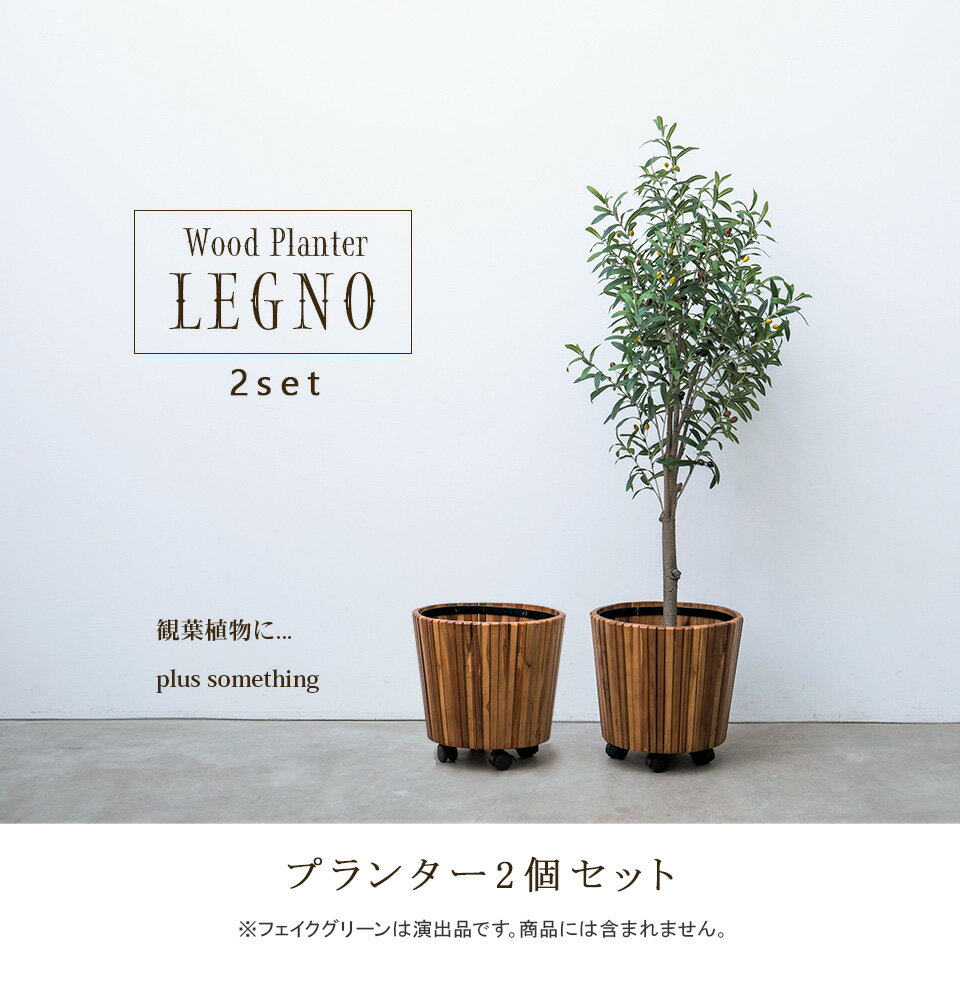 ★期間限定P5倍(要エントリー)〜11/27(木)1:59★ ウッドプランター 【2個セット】 グリーンベース プランター 天然木 チーク 鉢カバー ナチュラル オシャレ キャスター付き 【玄関お渡し商品】 【代引き不可】