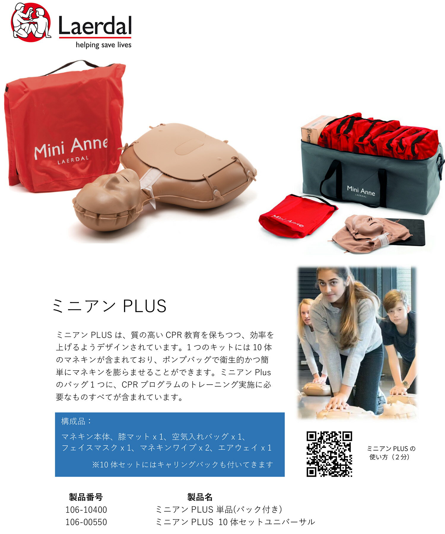 ミニアンPlus バッグ付 単品 心肺蘇生訓練用 AED CPR マネキン ユニバーサルデザイン Laerdal レールダル 106-10400