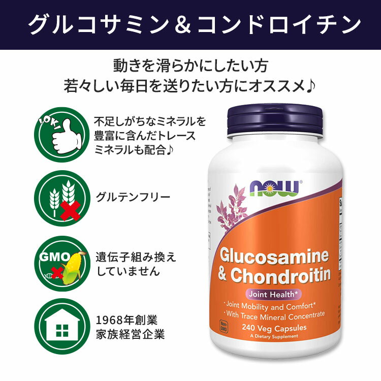【最大2000円OFFクーポン】ナウフーズ グルコサミン&コンドロイチン(トレースミネラル配合) ベジカプセル 240粒 NOW Foods Glucosamine & Chondroitin with Trace Minerals スポーツ サプリメント