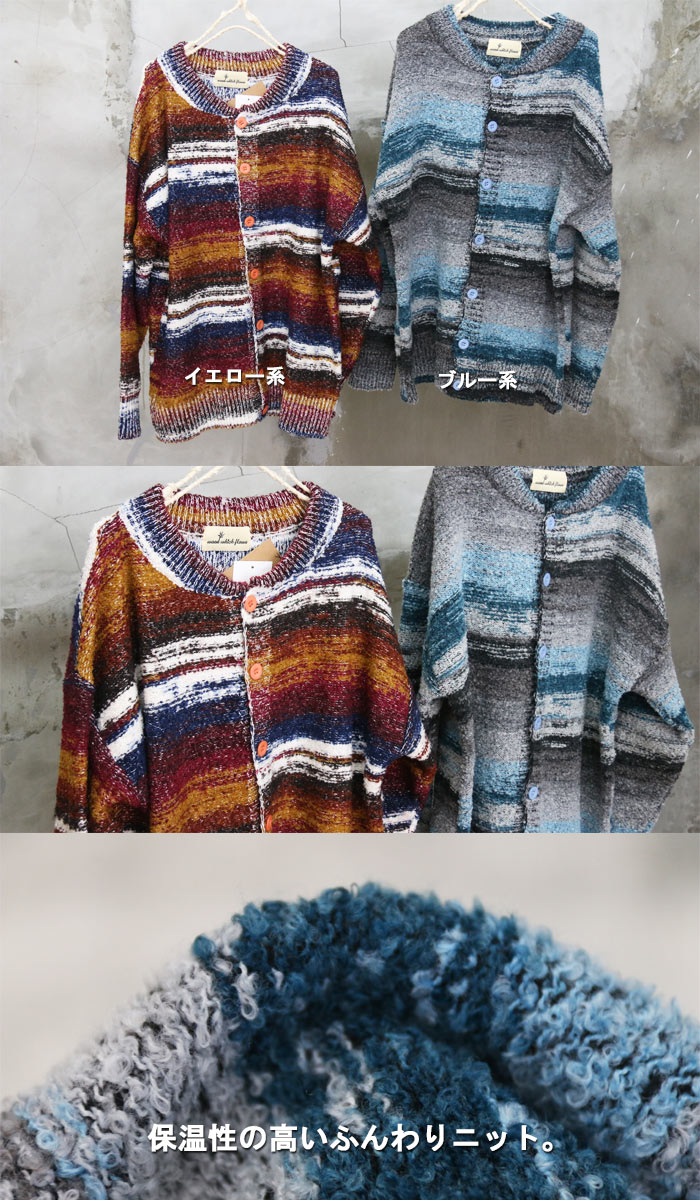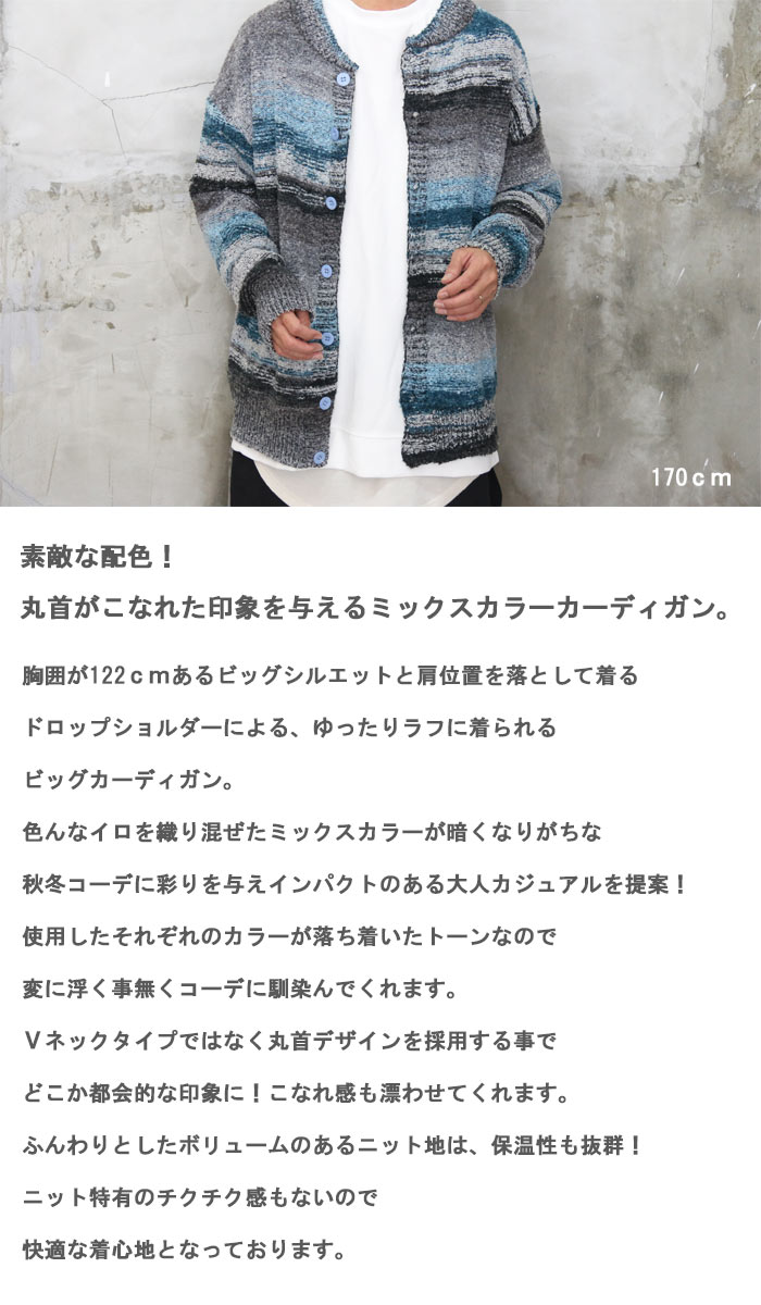 Boys beさんご着用 ミックスカラー丸首カーディガン メンズ ミックスカラーカーディガン ミックスカラーカーデ 丸首カーディガン 丸首カーデ 長袖カーディガン 長袖カーデ ミックカラーニット ニットカーデ ニットカーディガン 秋服 メンズ 冬服 メンズ 長袖 woodwhichflows