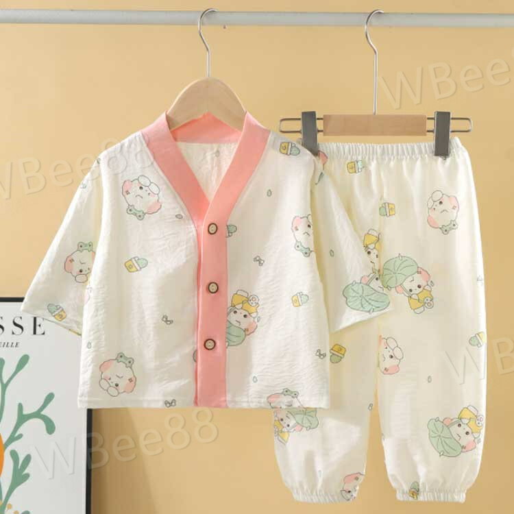 パジャマ 上下セット キッズ 女の子 男の子 七分袖 前開き 可愛い セットアップ カエル くま いぬ ハート柄 総柄 パジャマセットアップ 子ども服 ルームウェア 寝間着 薄手 かぶり ボタン 春 秋 夏 子供 入園 入学 やわらか生地